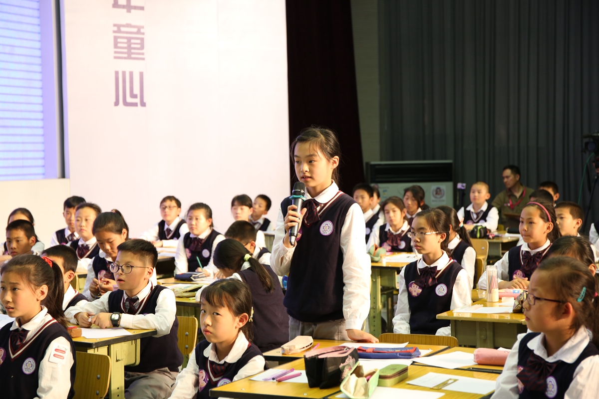 由低段、中段、高段四名同学在他们的自创课程“水木秀场”中向同学们和在座的老师们分享了他们在数学阅读中的感悟、收获和质疑,拉开了此次推广会的大幕。