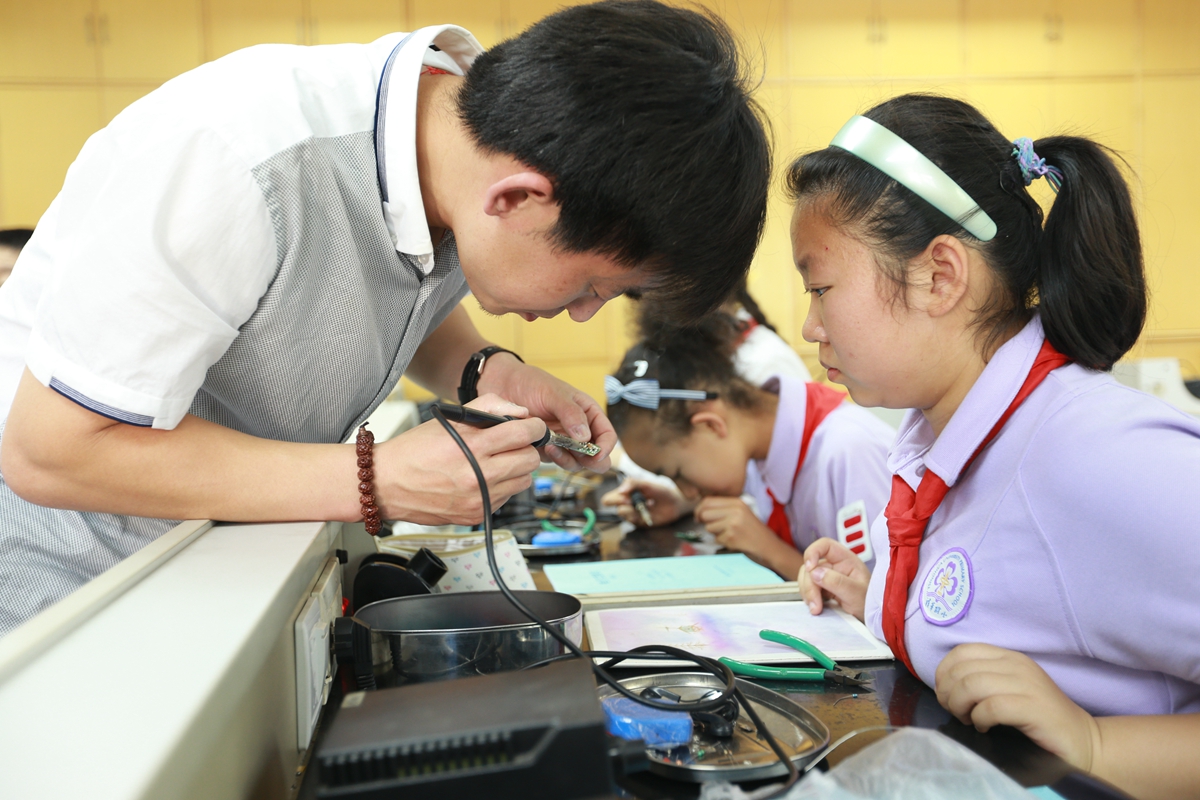 六年级学生即将毕业,百年的附小特别希望给他们留下一个永久的纪念,在主题教学及课程改革的整体理念下,清华附小的老师推陈出新,积极发挥自身优势,创新毕业课程,真正地为聪慧与高尚的人生奠基,培养学生的核心素养。学生们在清华园已生活、学习了六年,作为离全国顶尖大学优质教育资源最近的小学生,如果他们都没有过近距离接触大学实验室及工作室的经历,这对于附小的学生而言,不得不说是一种遗憾,乃至损失。为了让同学们近距离“触碰”科技前沿,开拓学生眼界,丰富经历和知识,激发学生学习的主动性与积极性,需要让小学生提前走进实验室,亲身体验,亲自动手操作。儿童站在学校正中央,要让他们切身感受到大学的治学氛围,从小就给他们选择的能力与意识。在体验中与辅导老师交流,认真严谨的科学研究态度也就培养了起来,形成报告过程中的严密的科研逻辑也渐渐的建立起来。学生们一旦具备了这样的科学素养,对日后要走科学道路将产生根本性的影响。