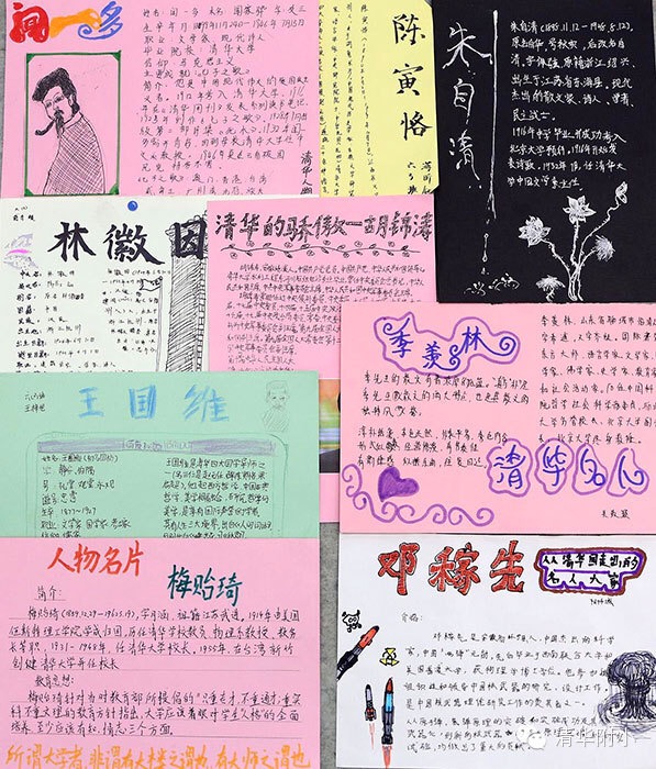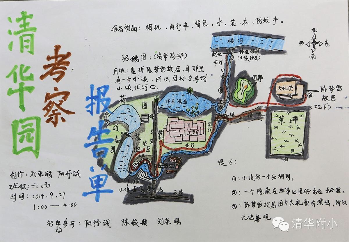 同学们以小组为单位自主学习,有的研究清华建筑,有的研究清华人物,有的研究清华历史,有的研究清华植物。之前,阅读动态静态的清华园确定研究课题,然后查找资料,亲身探寻,采访相关人物,定期汇报。结合学校科技月,他们在研究小课题中注入科技元素,研究建筑中的科学,清华园植物排列的利与弊,清华园水系的渊源。这个过程中,学生既是课程的开发者又是课程的参与者。