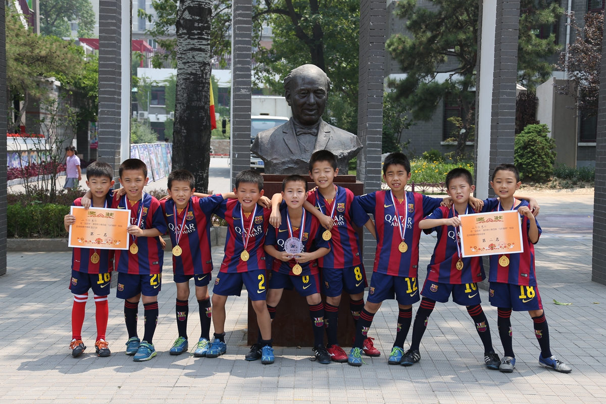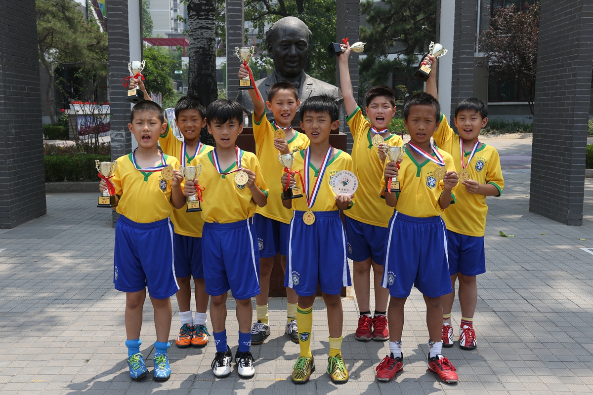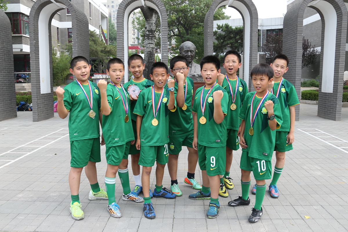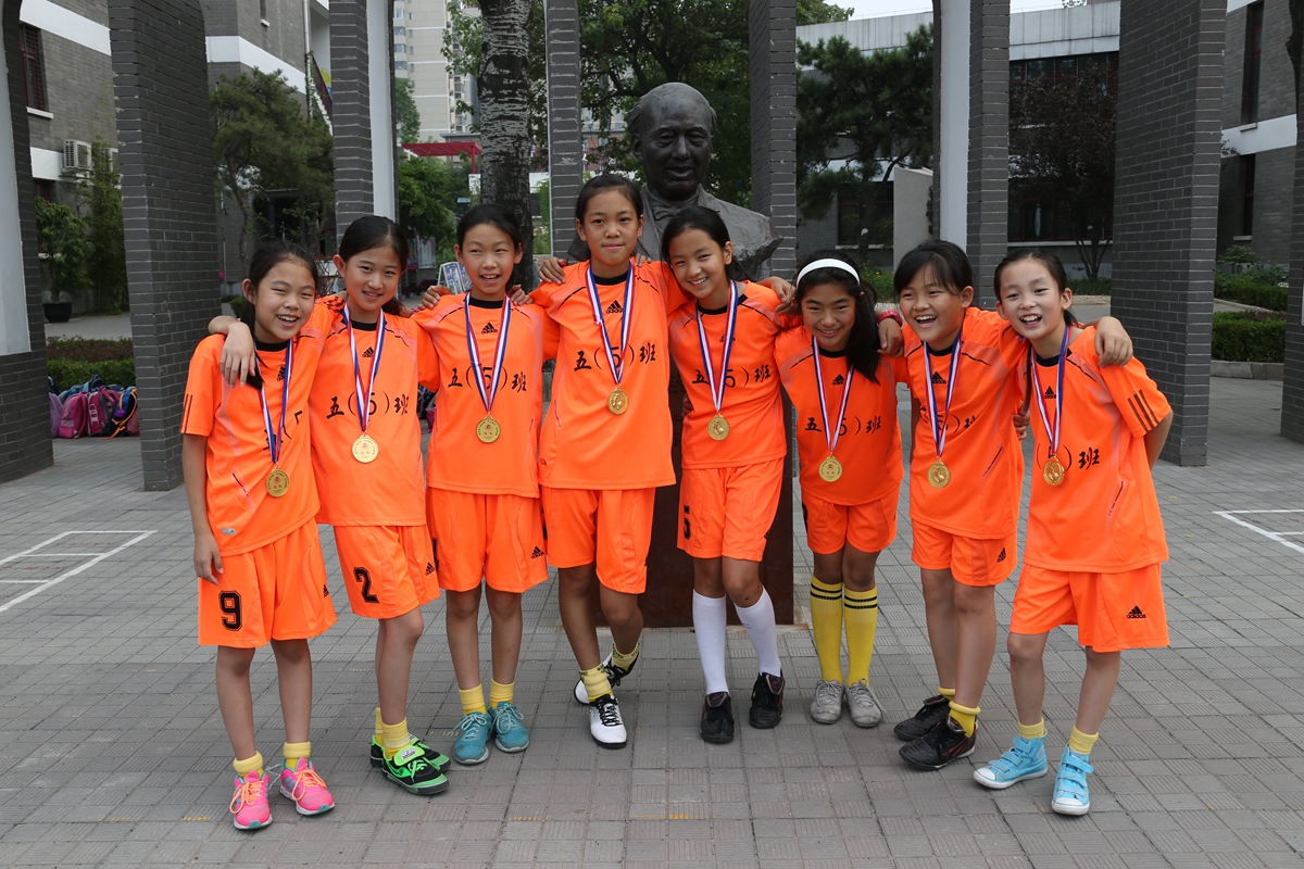 历经45天的比赛,全校42个班级、84支球队参与152场对决,上场队员多达800人次,家长全面参与,或教练,或陪练,或啦啦队。班主任老师说,需要配备速效救心丸看比赛,还有班主任老师配备了小喇叭……这是一场什么样的盛事呢?吸引如此多的人,将目光投向足球,将目标聚焦绿茵场。噢!原来是全国校园足球先锋学校,清华附小2015年第四届“马约翰杯”校园足球联赛呀!