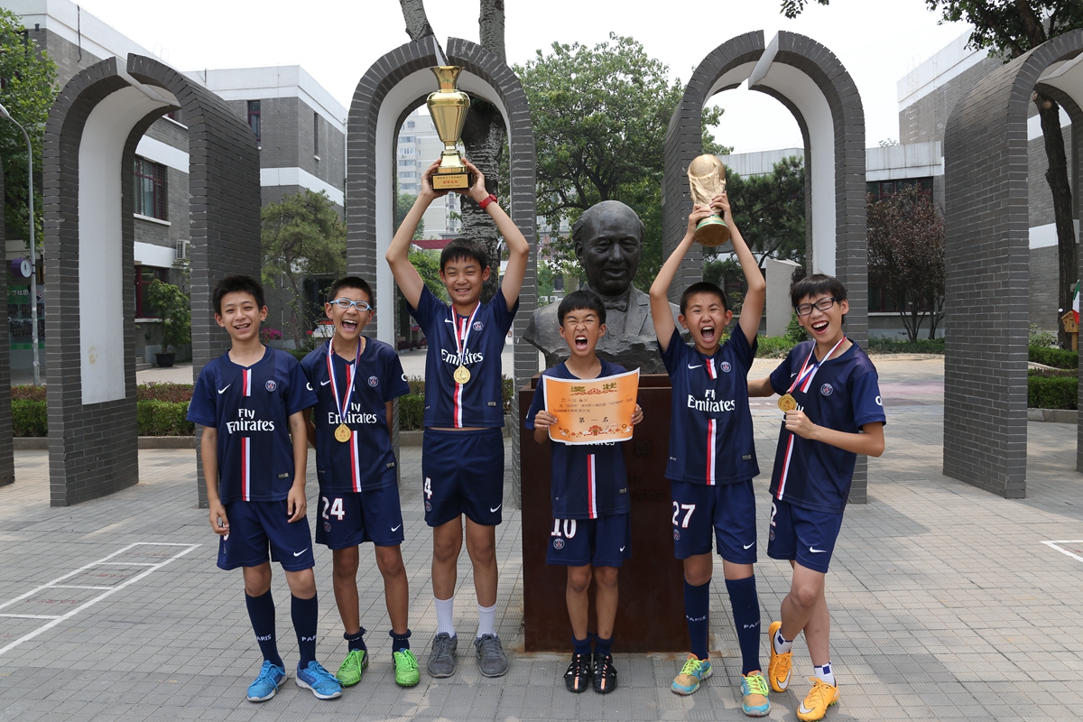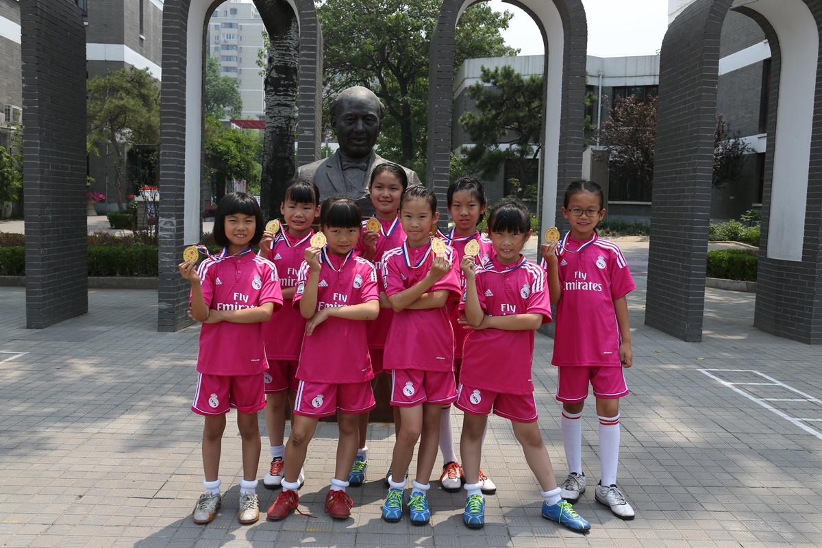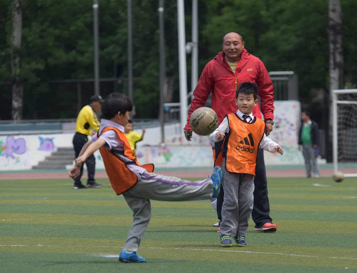 历经45天的比赛,全校42个班级、84支球队参与152场对决,上场队员多达800人次,家长全面参与,或教练,或陪练,或啦啦队。班主任老师说,需要配备速效救心丸看比赛,还有班主任老师配备了小喇叭……这是一场什么样的盛事呢?吸引如此多的人,将目光投向足球,将目标聚焦绿茵场。噢!原来是全国校园足球先锋学校,清华附小2015年第四届“马约翰杯”校园足球联赛呀!
