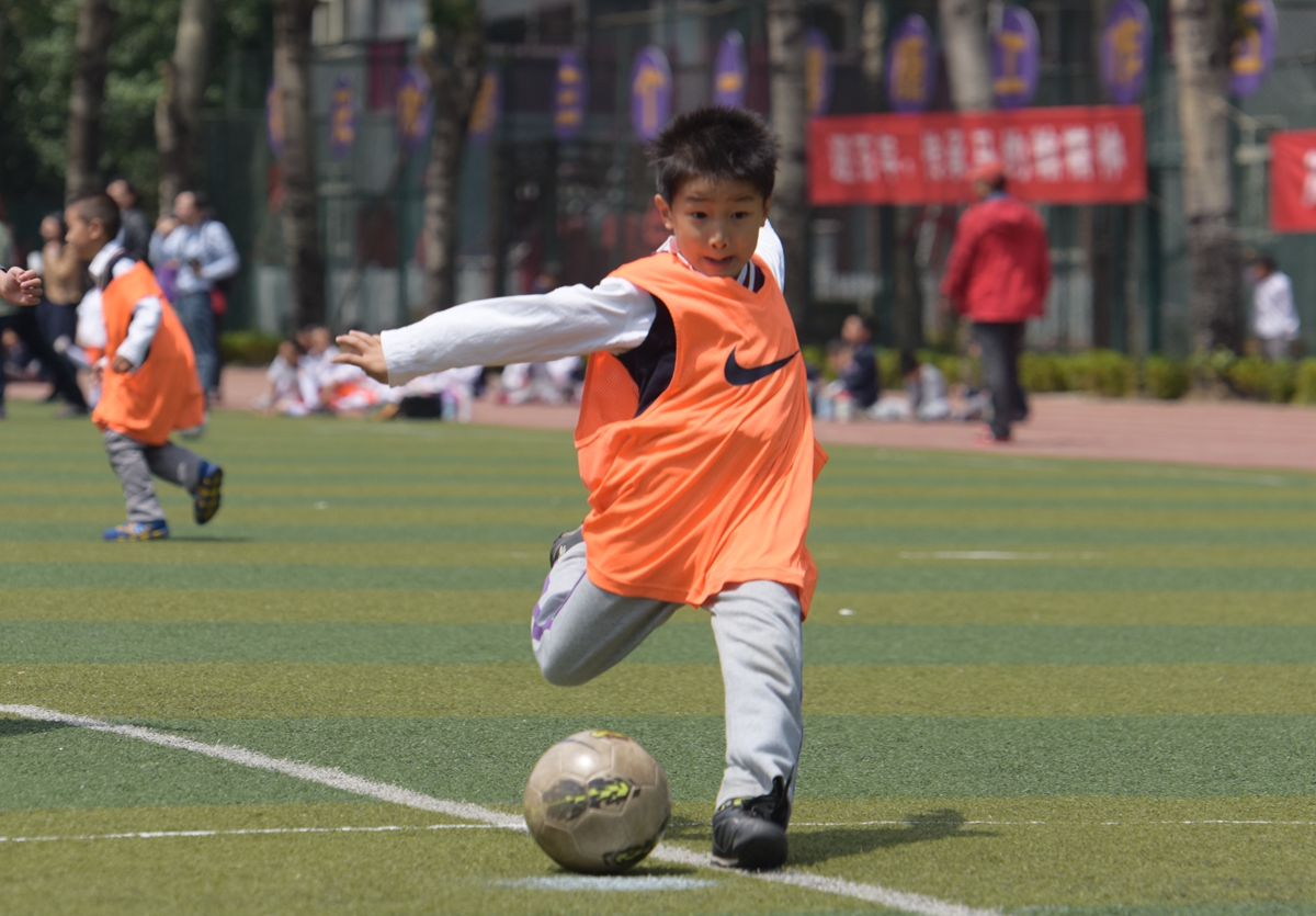 无体育不清华附小。在课程整合的背景下,清华附小基于学生“身心健康、成志于学、天下情怀、审美雅趣、学会改变”的核心素养,将学生健康放在首位,构建并实施了“1+x课程”体系,将体育作为核心课程。提出“每天体育三个一,健康工作五十年”的口号,三个一即“每班每天1节体育课、每天1个健身大课间和晨练微课堂、每人1个体育自主选修项目(足球、篮球、排球等9大项目)。”体育课比国家规定每周多2节。按照“有趣、出汗、技能、安全”的原则,立足课堂,清华附小夯实校园足球的根基。