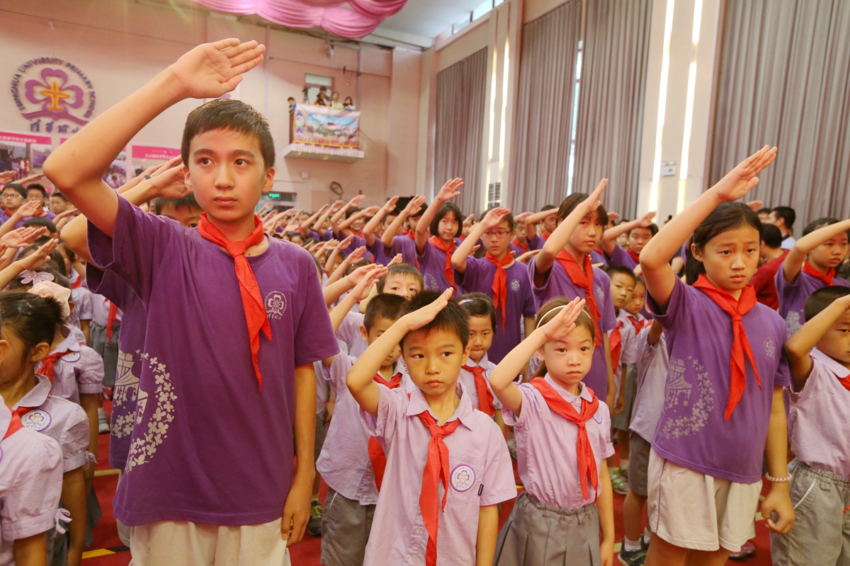 在光荣的队旗下,在星星火炬的见证下,队员们迈开了人生成长的第一步。