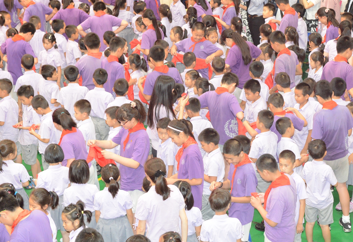 六年级的少先队员为一年级新队员佩戴了红领巾,即将离开母校的他们,将尊重感恩和勇于担当浓缩在为新队员佩戴红领巾的过程中,即将佩戴上红领巾的一年级同学们,讲述了自己的入队故事!