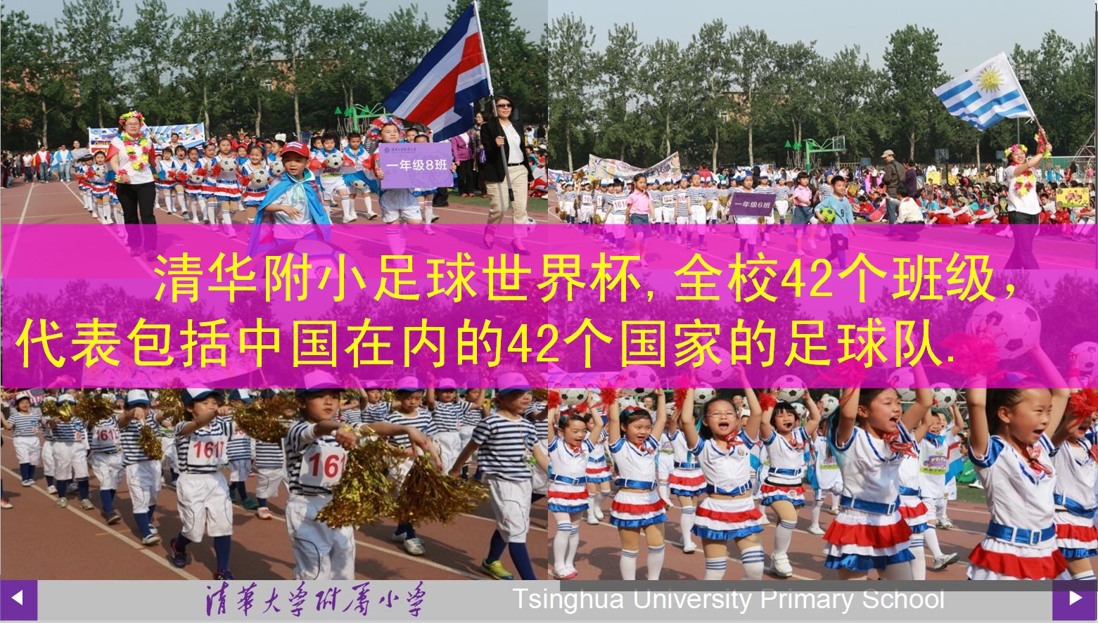 清华附小校园足球发展,不功利的追求比赛成绩,既不应试唯一,也不以素质教育为掩护的无所作为。立足课堂教学,打基础;开展足球活动,提兴趣,强技能。旨在通过足球使全校学生拥有一项好的运动兴趣,拥有一身好体魄。通过制定足球发展规划、编制学科规划纲要、制定校本课程,形成清华附小的校园足球校本课程。学校面向全体学生开展校园足球,努力做到:人人踢足球、人人懂足球、人人爱足球。