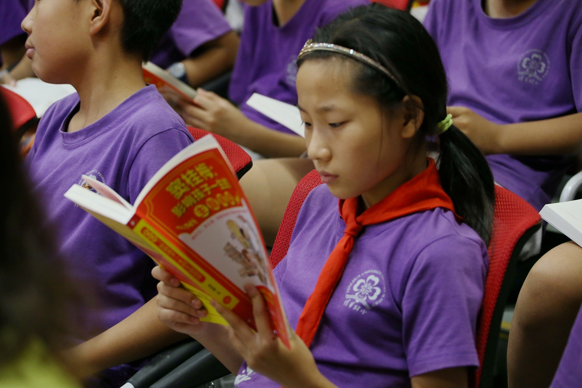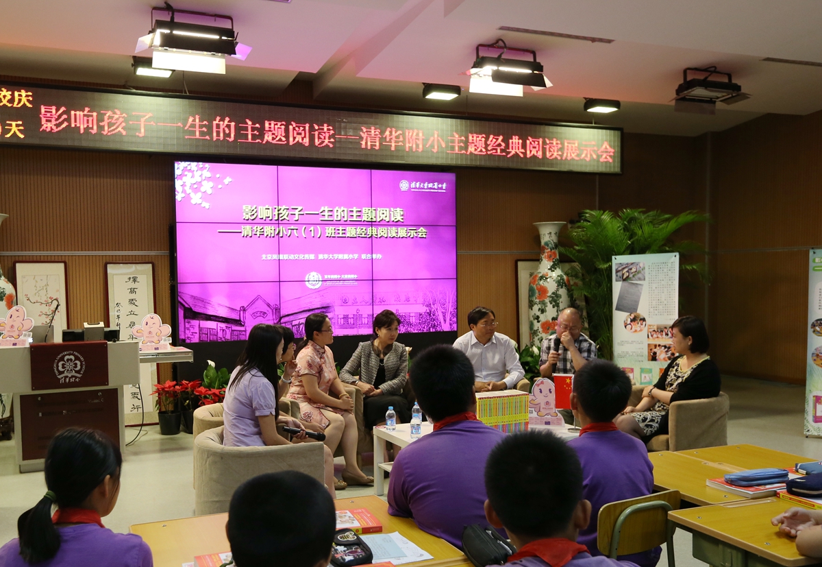 专家论阅读,点亮了课堂的厚重。全国著名读书推广人人教社的王林博士、生命教育专家张文质老师、清华附小窦桂梅校长、六一班的家长代表与焦玫老师,就经典阅读对于儿童的意义、人生的意义,为即将走向中学的同学们,展开零距离的畅谈。
