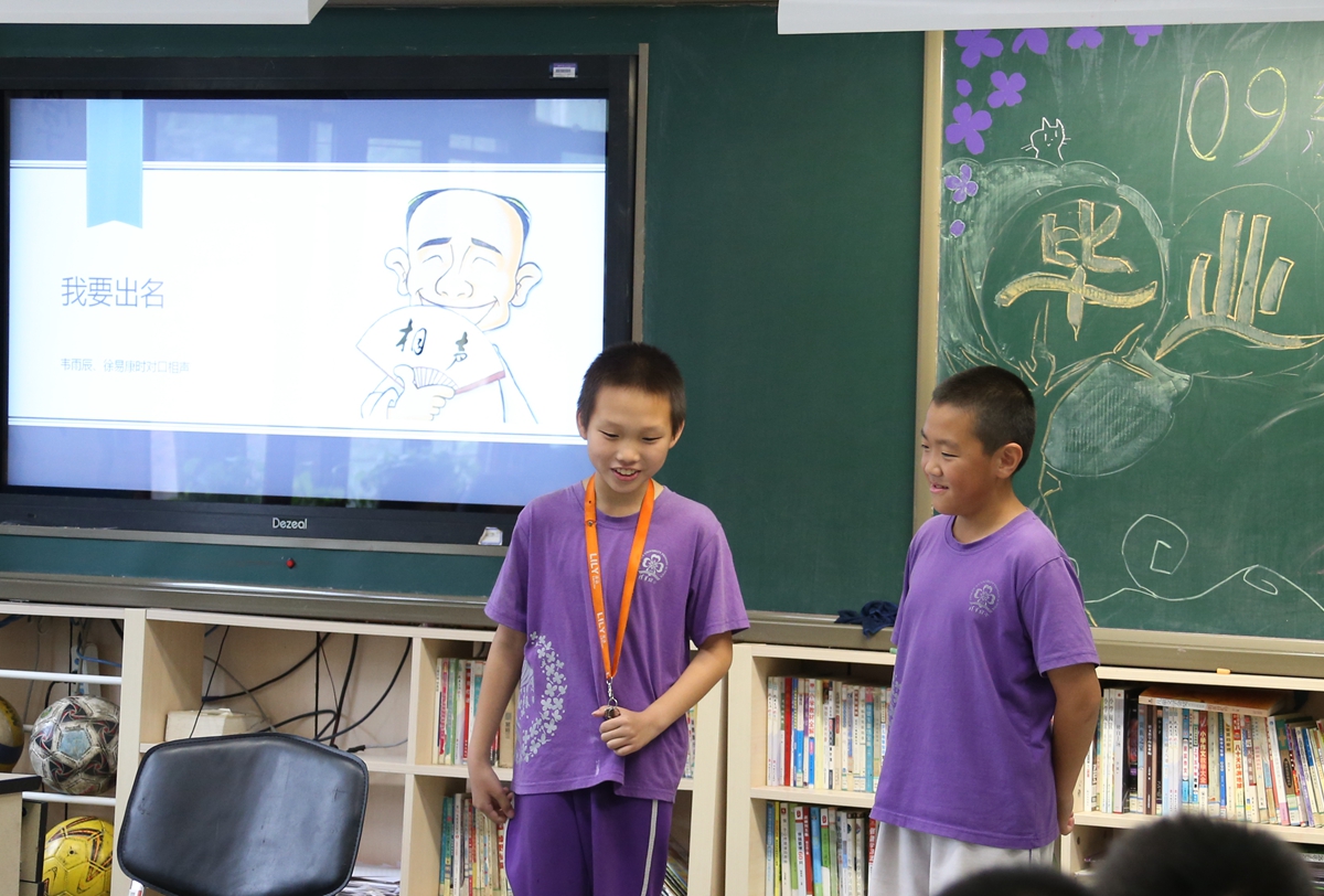 2015年6月24日,在修远楼的毕业班级里,开展了与众不同的毕业展示活动,既有同学倾情的才艺表演,又有老师家长们热情地参与互动节目,活动呈现出了常态课程的样态,每位同学对自己在附小成长的故事都娓娓道来,表达了对母校恋恋不舍的情谊。