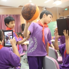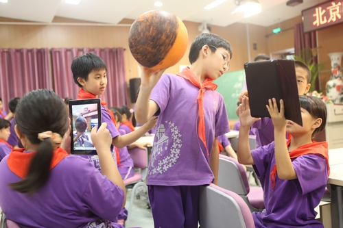 育英小学的王晓英老师在上课