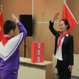2011年10月13日,金秋时节,在中国少年先锋队成立62周年之即,清华附小2011届少先队代表大会顺利召开!会上,首先由校领导、嘉宾及来自各中队的90名少先队员代表齐声高唱中国少年先锋队队歌,随后代表们共同听取并审议了少先队工作报告,同时选举产生了学校新一届大队干部。 新的形势和任务赋予了少先队光荣而艰巨的使命。我校少先队工作将以此为契机,继续积极开展丰富多彩的少先队工作。