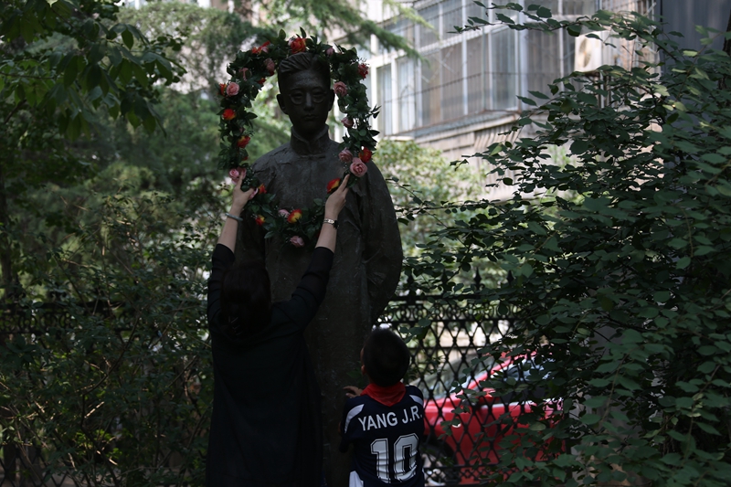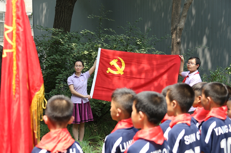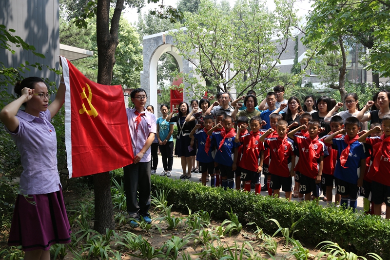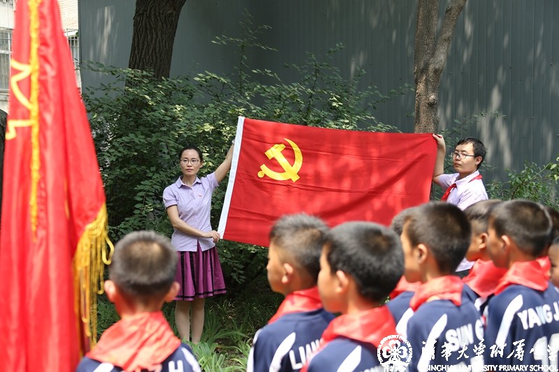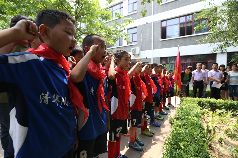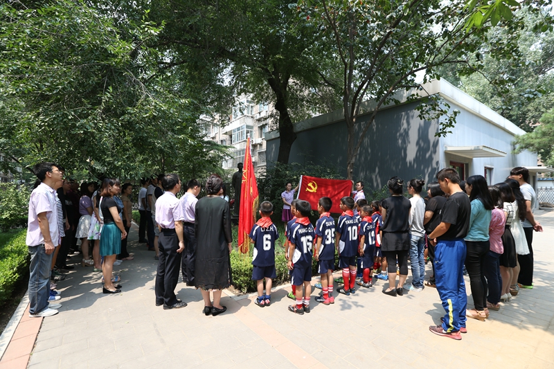 7月7日上午,为纪念“七七事变”78周年、反法西斯战争暨中国抗战胜利70周年,清华附小在清华大学第一位共产党员施滉雕像前进行“铭记历史,铸和平之魂;缅怀先烈,育家国情怀”教育活动。