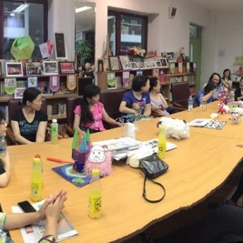 为了筹备联欢,策划和组织整场文艺演出,当年大家共同的音乐老师毕可纫忙前忙后,倾注了大量心血。今天毕老师也冒着高温亲临舞蹈队排练现场,观摩指导排练,还带来清凉的冰棍儿和饮料慰问大家,并与大家一起座谈观感,极大地鼓舞了校友演员们的士气。