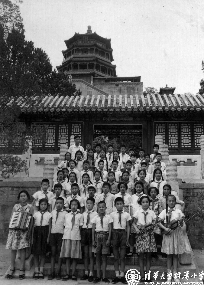 - 1962届乙班五年级时在颐和园联欢活动,前排右2拿小提琴者是作者