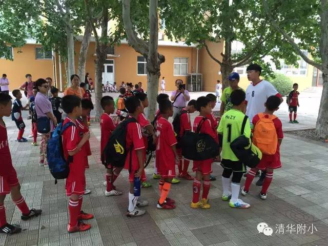 今天来自全国16个省市68个参赛单位202场比赛的“鲁能杯”开战了~在我们第一场比赛之前,2000多名参赛队员及教练员进行了合影,留下了咱附小人走过的痕迹~“过人,传球,射门……”清华附小的第一场比赛开始了,开场仅7分钟,1:0领先40多名队员组成的济南足管中心一队,或许是第一场比赛,孩子们难免有点儿紧张,在久攻不下的情况下,对手扳平了比分,队员的心态开始发生变化了,失误明显增多。38度的太阳公公在给孩子加油,场下所有的教练和家长给孩子加油,场上的孩子心中始终有我们清华附小人永不放弃的精神在激励,最终连进三球,以4:1完美开局!午饭后稍作调整,下午和香港的一个小学进行了友谊赛,场面亦是精彩纷呈,以4:3取得胜利。对方教练也情不自禁地给出赞美~此时孩子们已经进入梦乡了,祝愿大家明天能够继续向快乐出发!
