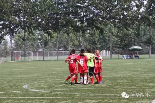 潍坊的云适时地把头上的烈日遮住,高温的夏天奇迹的出现了微风,比赛照常开战,四川成都队是我们的第四个对手!我们总结昨天的比赛教训,必须占得先机,一开场就进行全场紧逼,人盯人,防转身,一个梦幻般的开局就来了,对手在压力下显然失去了阻挡能力,比赛前15分钟,2:0领先,半场过后,4:0领先!中场休息,教练员进行了人员调整,对手的实力我们也能了解一二,换上了咱们三年级的小队员,让他们用自己的球技去球场上展示自己~30分钟过后,这帮06年出生的小伙子把比分改成了7:0!今天鲁能足校的b6号场是属于咱们清华附小足球队的,球场内外开心一片~今晚我们的总结会明确指出两点:第一,所有人忘掉这场比赛,第二,明天迎来最强劲的对手鲁能足校一队!四场全胜的战绩和鲁能齐头并进,明天就到了冠亚军之争的关键一役,衷心的祝愿明天好运,大家!