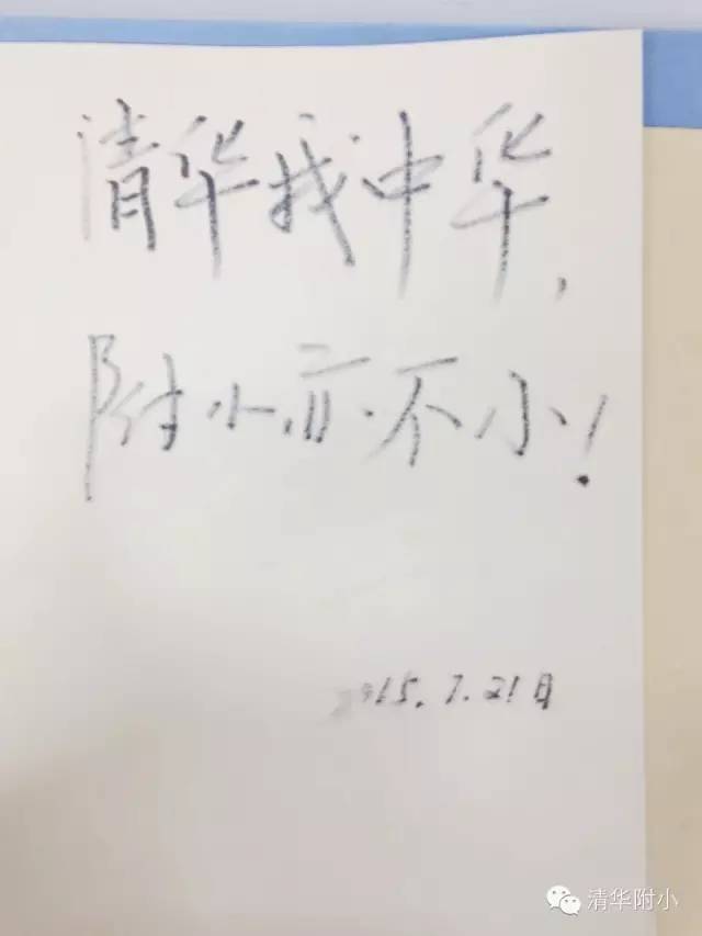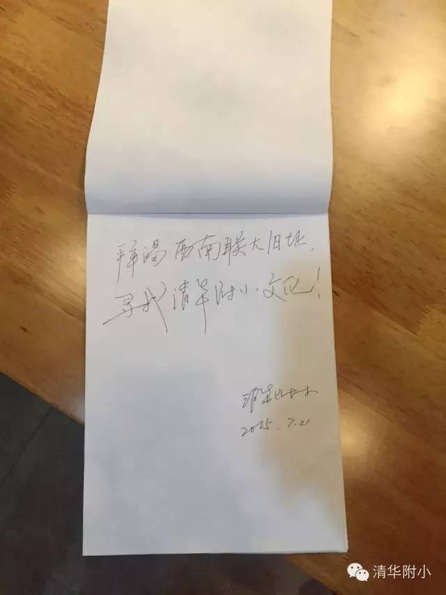 此次百年校庆,会上演一场清华附小师生创作演出的百年大戏《丁香花开》,身为戏中演员的老师们边感受边讨论,“那个镜头应该怎样修改设计,才能使这种形象而真实的表演形式,让所有观众的内心受到深深震撼。”“如果将这一幕重现,更加能体现西南联大的精神留存”......一天的参观感受,从西南联大办学旧址,到熊庆来、李广田故居,清华附小的老师们是深受震撼的。窦校长和老师们怀揣着对前辈的敬仰之情在这里留下了“清华我中华,附小亦不小”这负有深深情感的十个字。