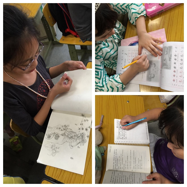 虽然紧张地排练着,但我们依旧会抽出时间画画、练字、写作文↓