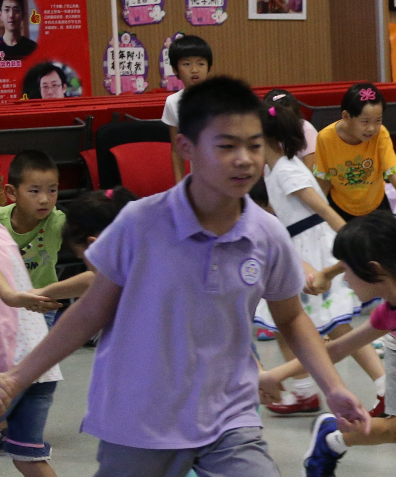 起初,这个孩子并不那么引人注意,只觉得他是一个容易紧张、略有拘谨,又不太善于表现的男孩。在前两幕戏中,他始终都没有承担重要的角色,却一直默默地在反复体会、反复练习,每次排得满头大汗!还记得一次排练中他把脚弄伤了,没想到第二天竟穿着拖鞋继续坚持排练,这精神深深感动着我们身边的每一个人。孙晨轩从第一幕的“默默无闻”,到第二幕的“不断坚持”,到第三幕的“大胆展现”,终于一点一点在自己的执着与努力中释放了最棒的自己,同时也获得了更多的成长!