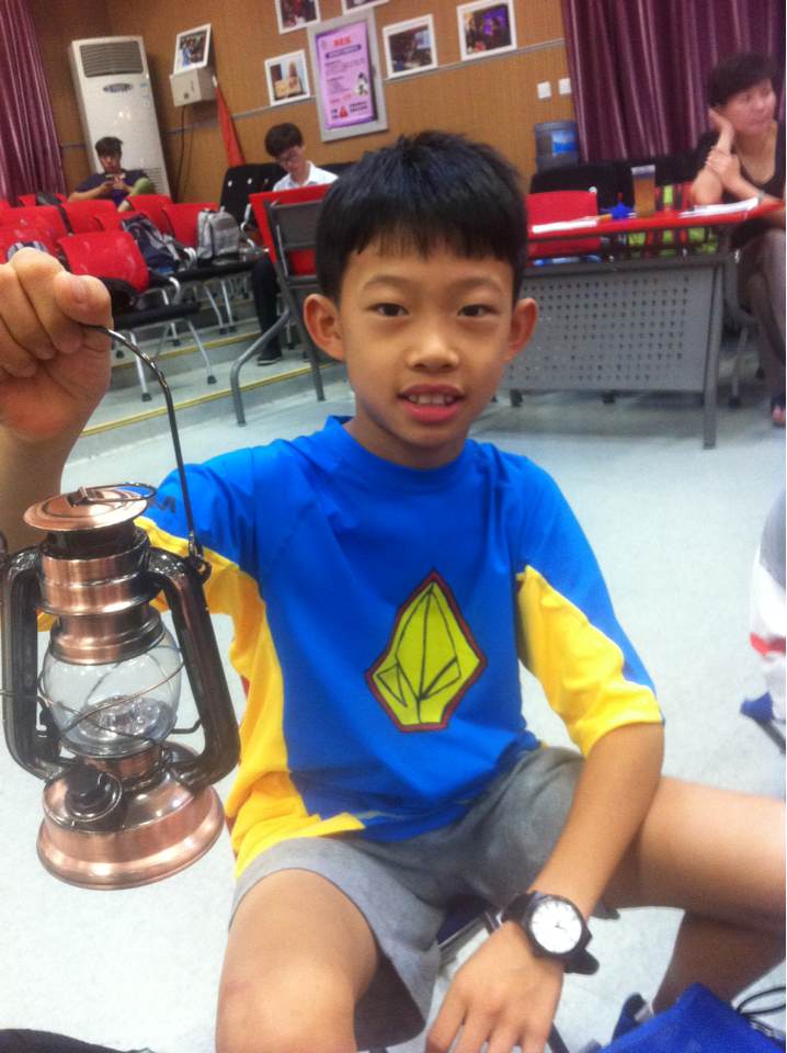 在排演第一幕《最后一课》时,剧情中有一个小高潮是傅任敢校长点燃起煤油灯,班长接过这盏灯并高举起它,带领同学们循着光明奔向明亮的那一方。每次排练,老师手里总是拿着一个矿泉水瓶,有时拧开盖子,盖子应声落地,大家就会被逗笑而"跳戏"。五年级的雷越同学却想在了大家的前面,第二天便自己网购买来一盏灯。当大家纷纷向他夸赞时,他总是谦虚地说应该的。多么有心的孩子,让我们为小暖男雷越点赞!他没有一句台词,却认真练习,还为剧组准备道具油灯,每天都细心带回家充电,第二天再按时带来。