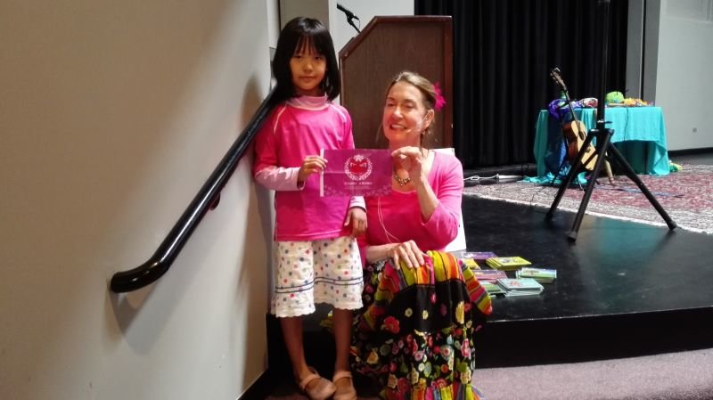 向著名插画家和图画书作家Janet Stevens宣传附小并合影