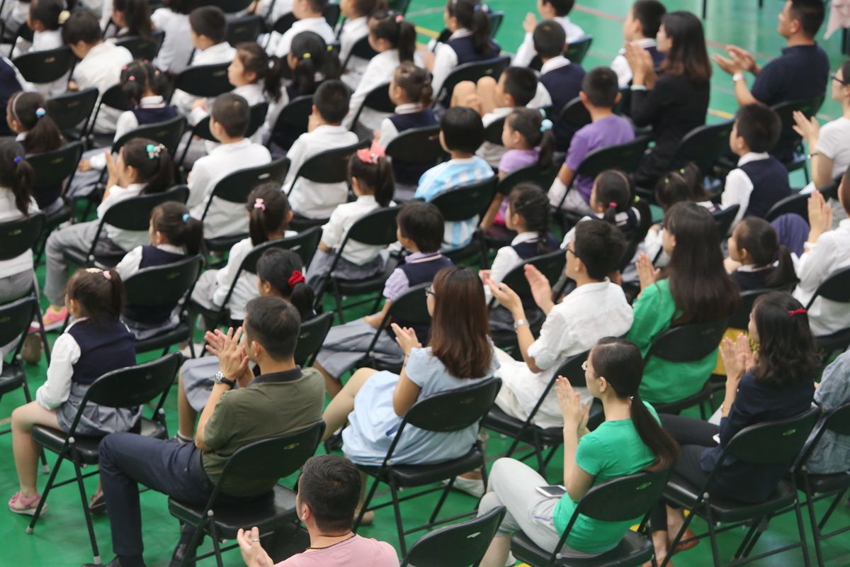 阅兵式上的壮观场面,让老师和学生情不自禁地鼓起掌来