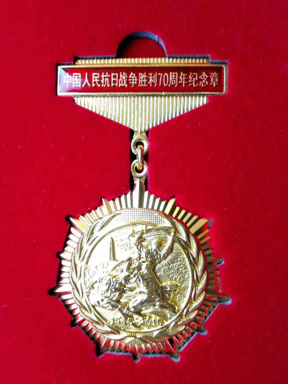 这是我95岁的太太的勋章。她是参加过抗日战争的新四军老战士,在纪念抗战胜利70周年的日子里,她获得中央颁发的纪念章,收到一份厚重的礼物和荣誉。衷心祝愿她和所有抗战老战士健康长寿!