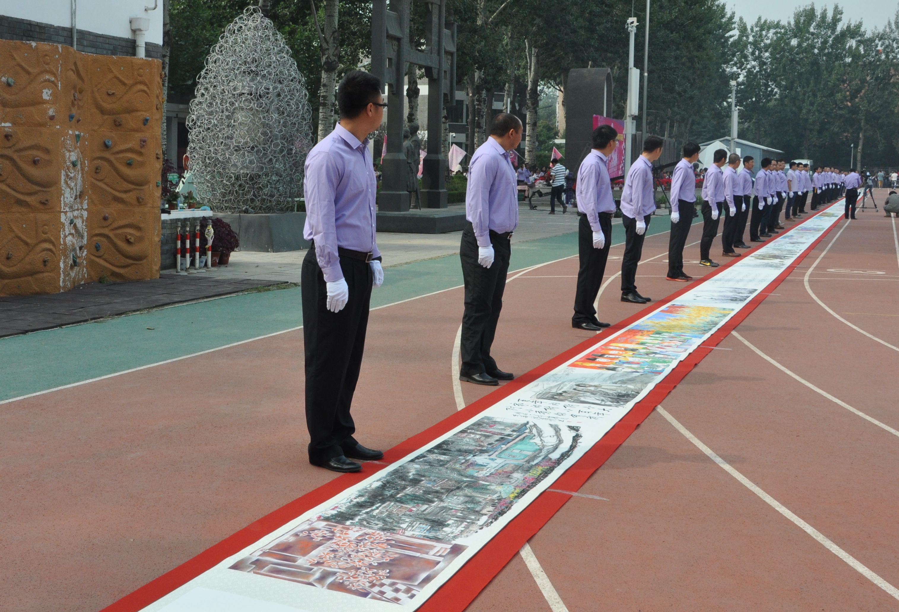 《百年成志教育画卷》长133米、宽0.7米、历时三个月,由清华美院书画高研班28位导师、13位助教(班主任)携手清华附小60余名师生共同挥毫泼墨绘制而成。