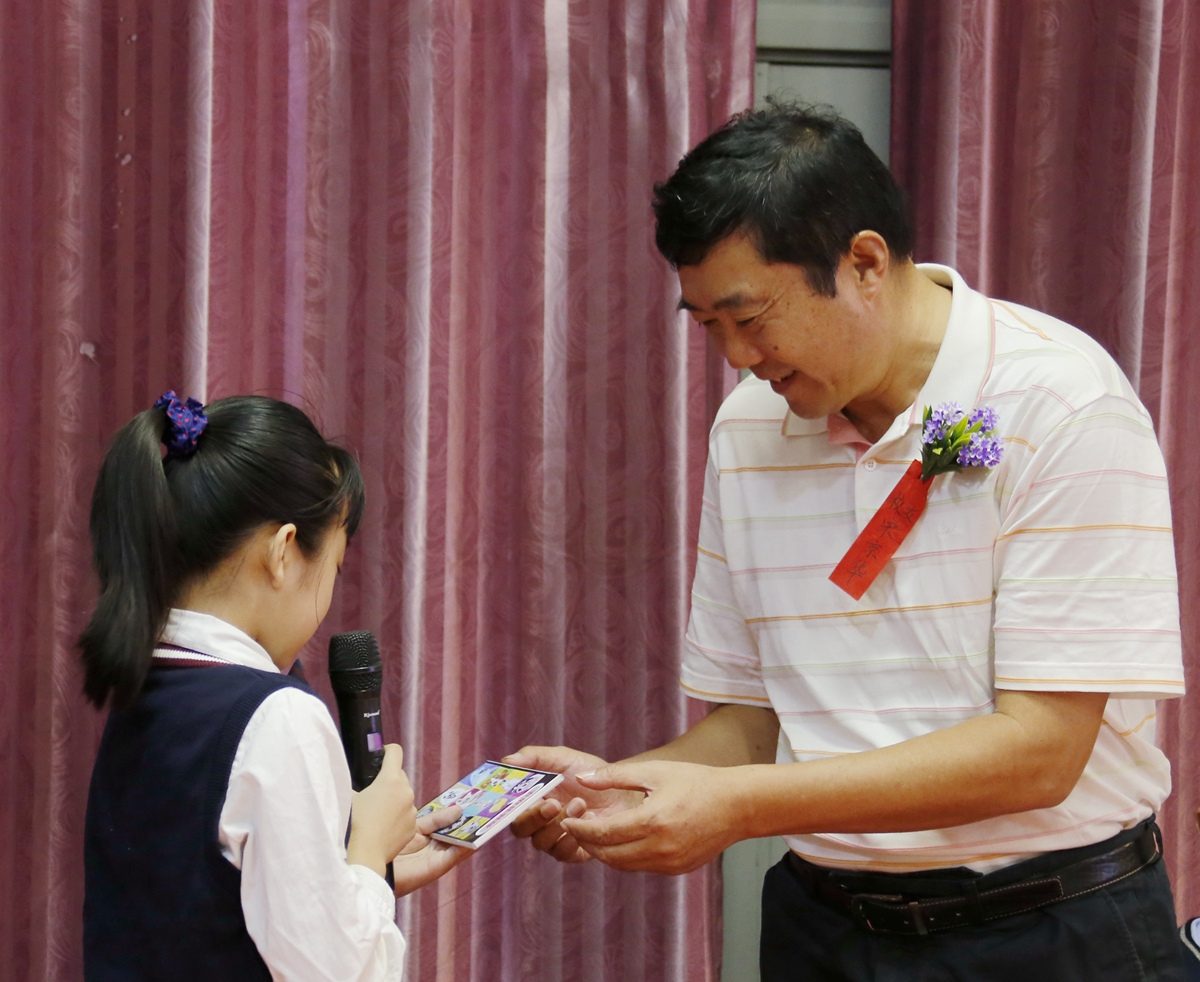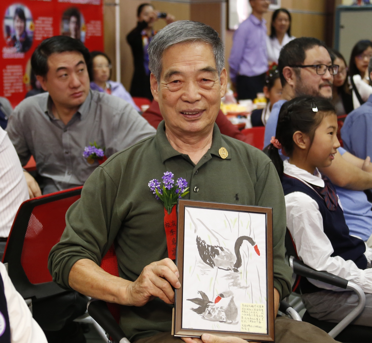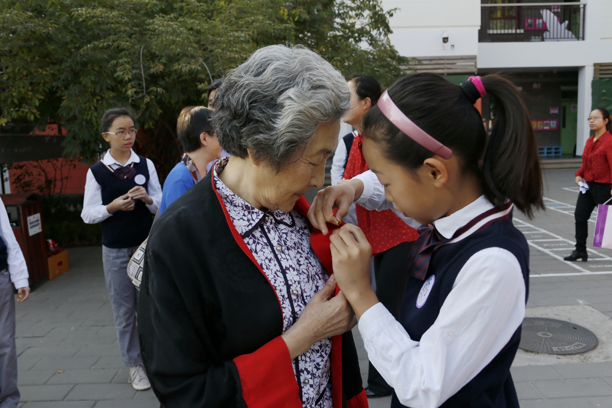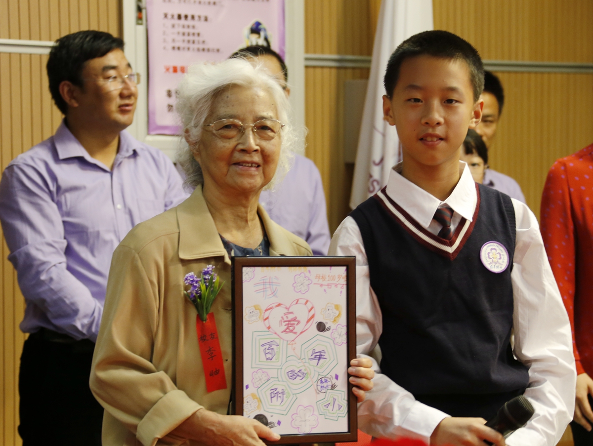我来为成志榜样校友袁刚带上附小百年纪念徽章
