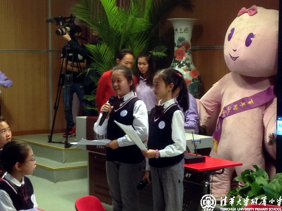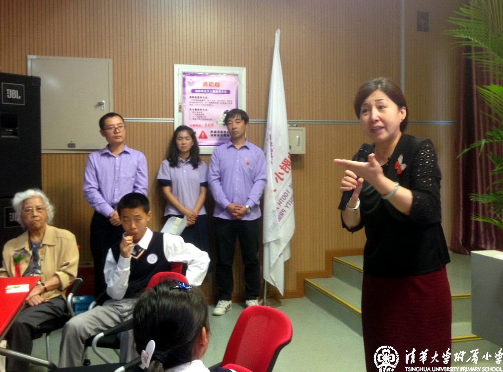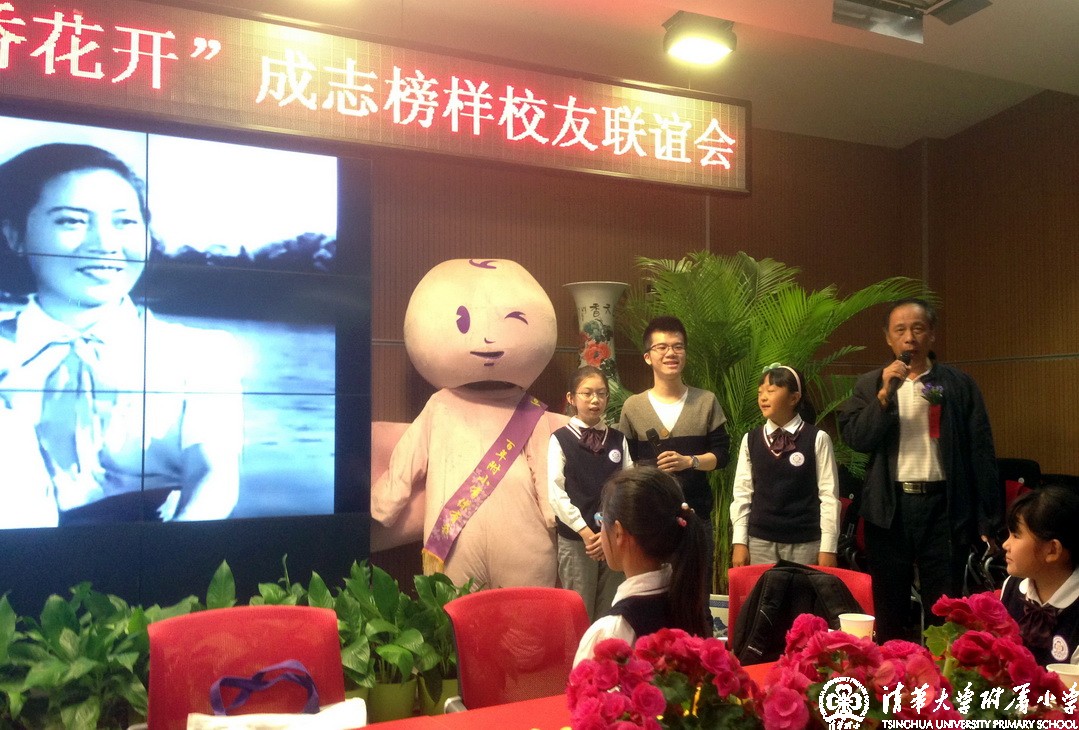 窦桂梅校长在联谊会上,向全体与会校友致以节日的问候,深情地表达了对老校友返校的感激之情。她介绍了学校百年系列活动和新百年成志教育展望,并热情洋溢地说,今天来到这里的校友们,很多人都成为了祖国的精英、同学们的榜样,但无论是精英、榜样还是普通劳动者,他们都是从清华附小这片泥土中成长并走出去的,都是祖国的栋梁。她还说,附小校友会的成员历时一年多的艰苦努力,出版了两本书:《世纪情愫》和《校友名录》,《世纪情愫》将成为附小在校生的必读书目。她希望大家永远不要忘记“清华附小,永远是小学里的大学”“清华附小,你们、我们,永远是相亲相爱的一家人”。