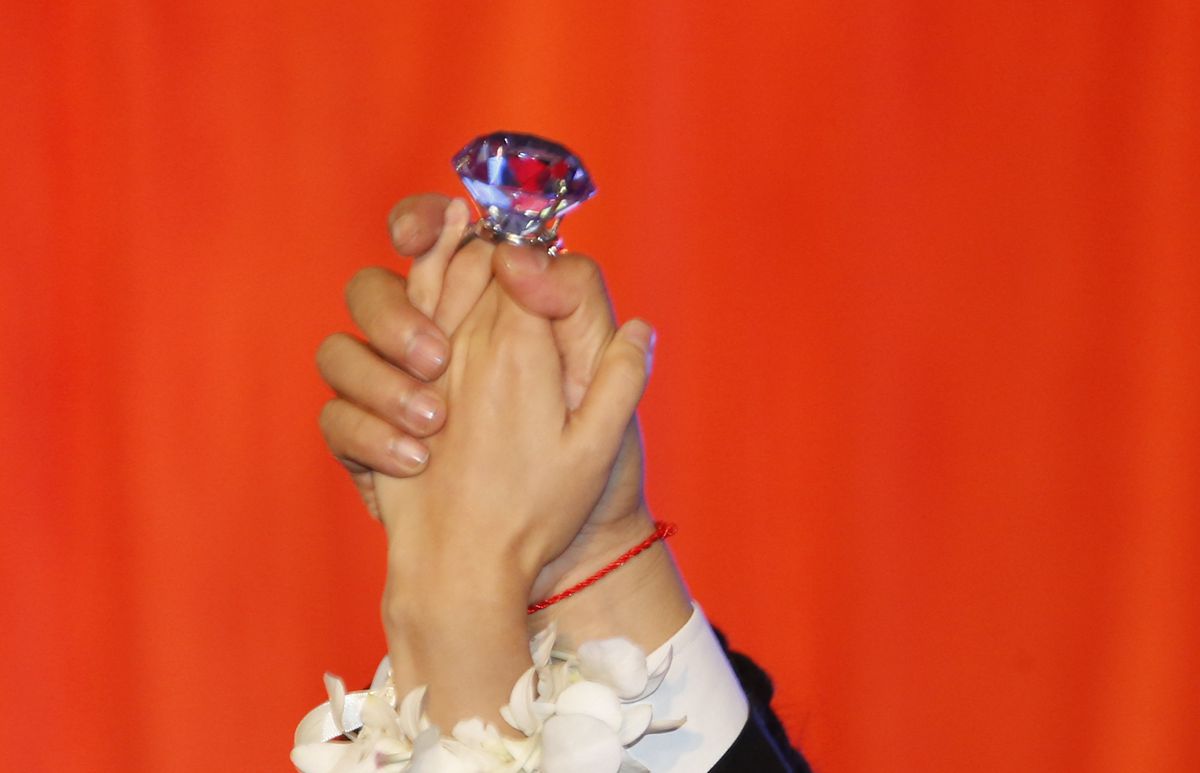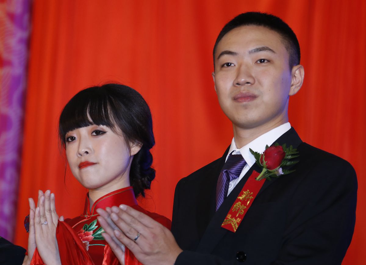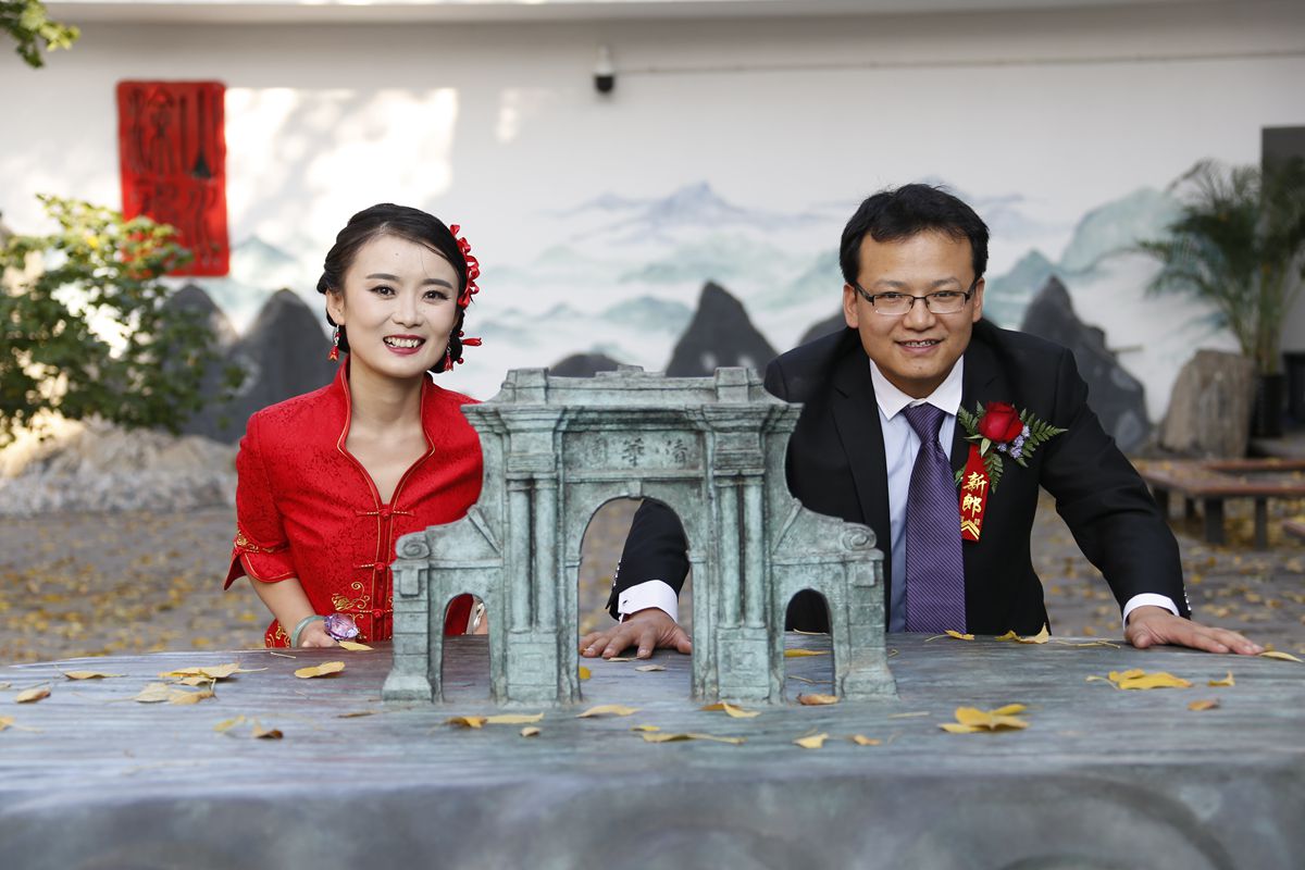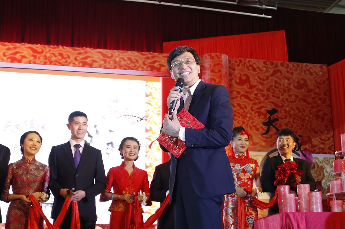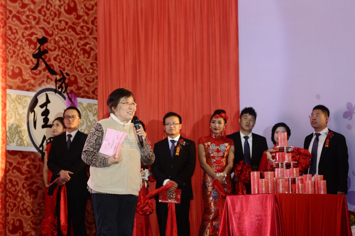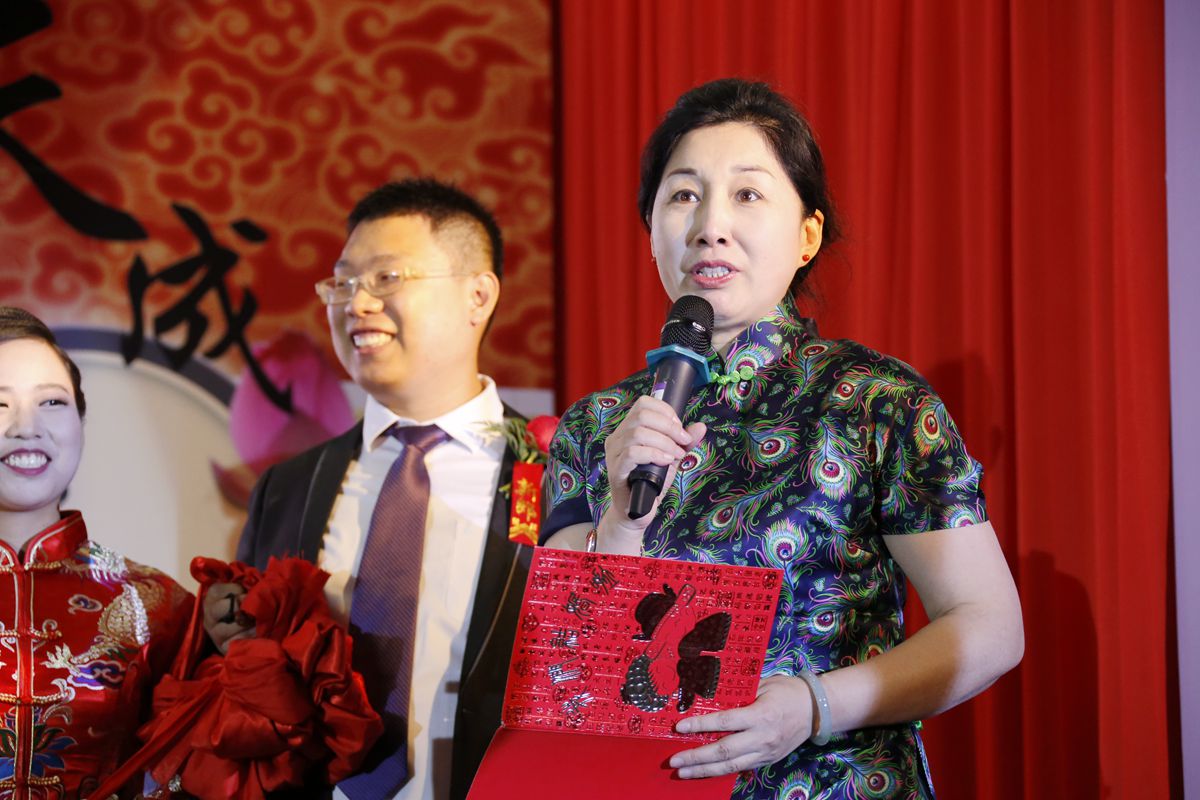 清华大学工会主席王岩鼓励新人们在今后的家庭生活中彼此支持,用幸福的生活兑现“白首偕老、真爱一生”的诺言!