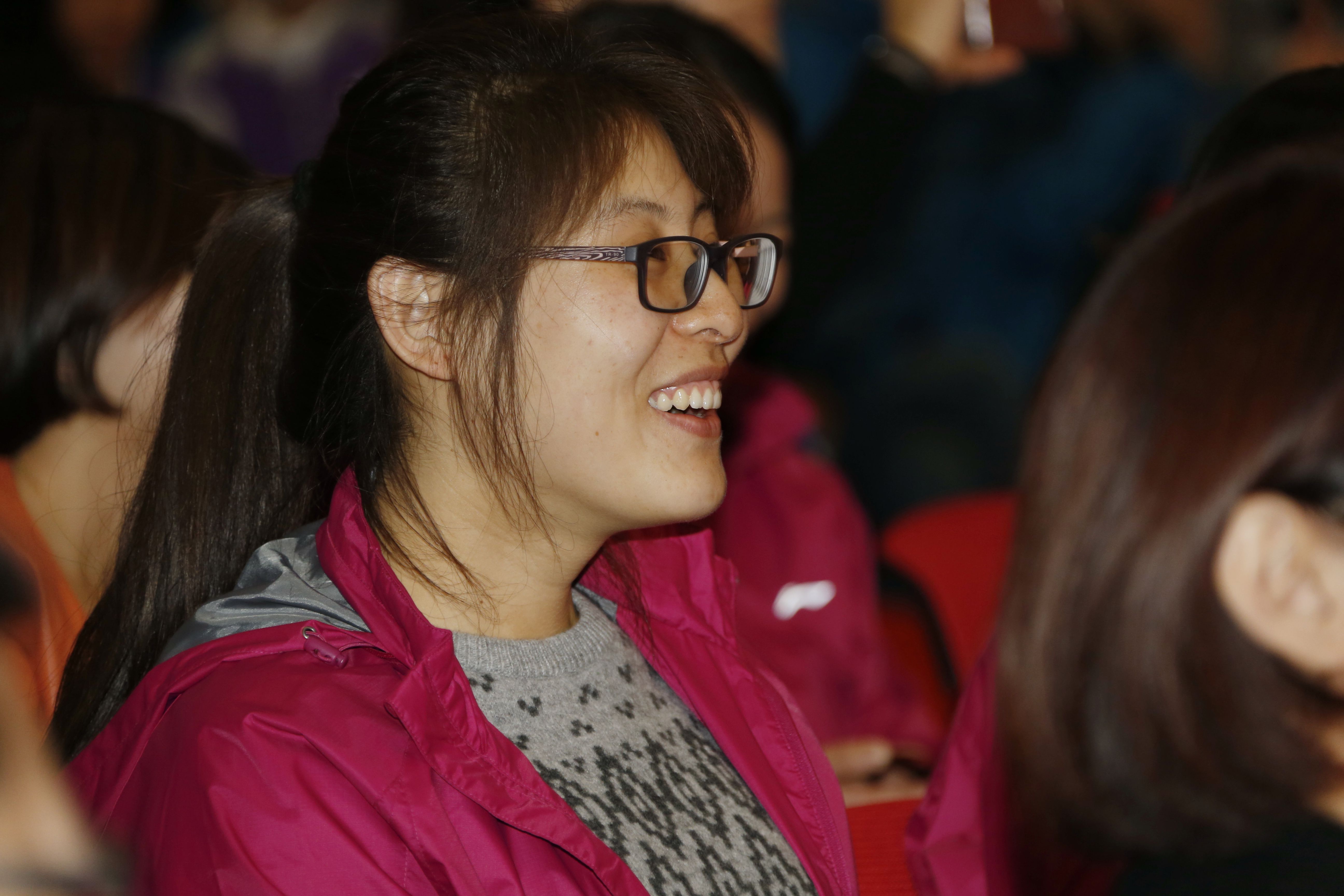 全校教师齐聚丁香树前为廖老师送上生日祝福