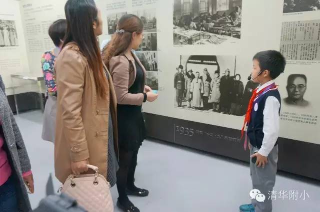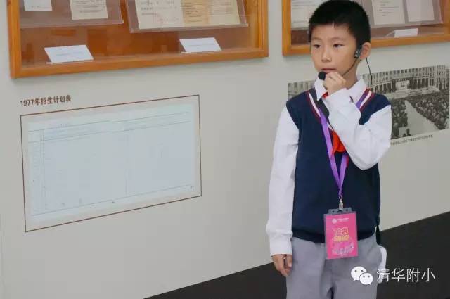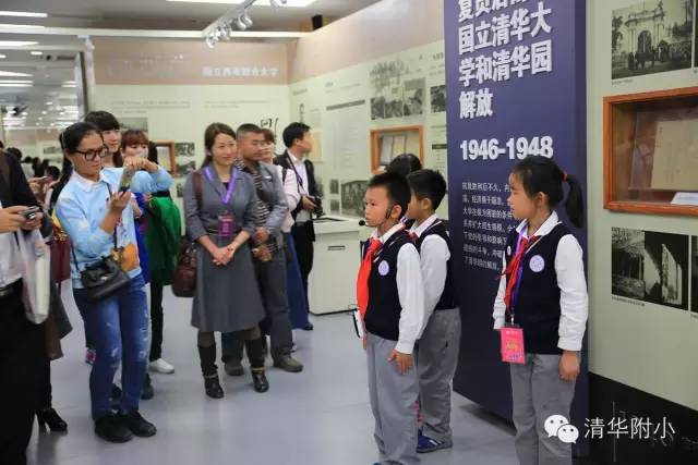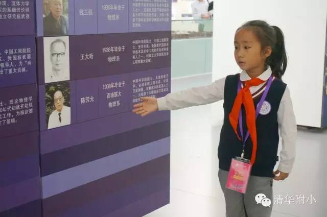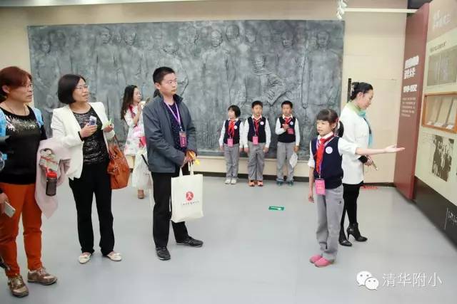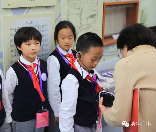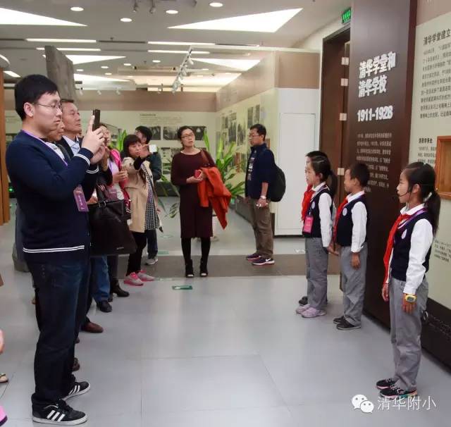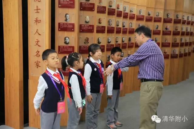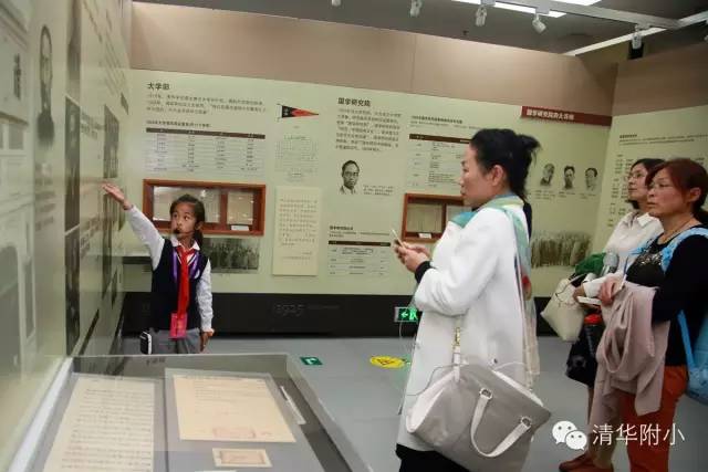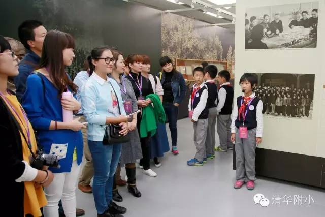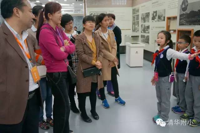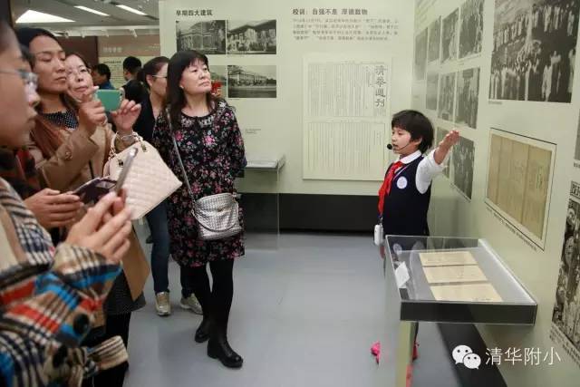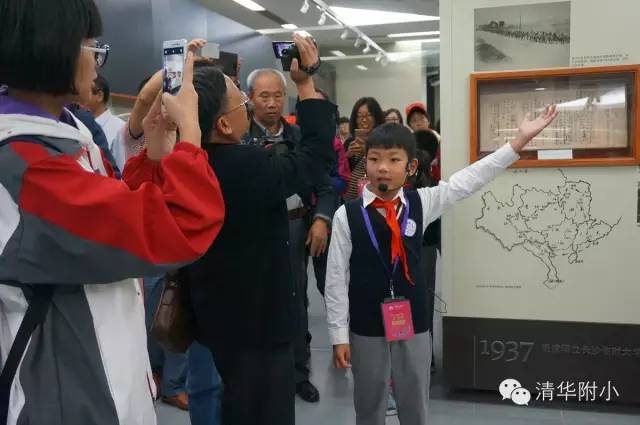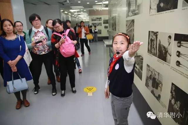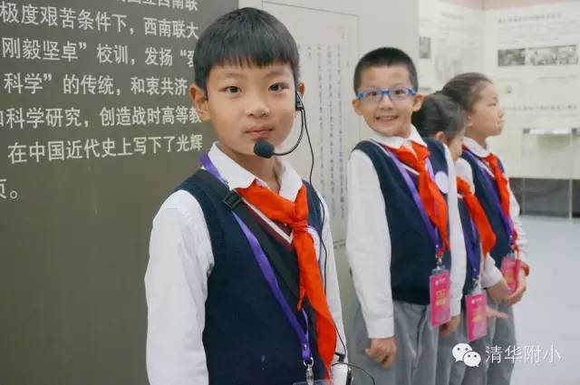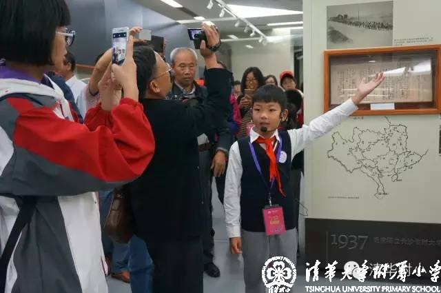 “清华学堂成立于1911年4月29日,于1912年更名为清华学校……”清脆的童音,将厚重的百年清华校史娓娓道来,听来别具一种感动的力量。“清华大学的校风是‘行胜于言’……”孩子们“手到、眼到、口到”,各种专业的手势、标准流畅的解说词,微笑自信的神情,让来宾不敢相信这是三年级的孩子!