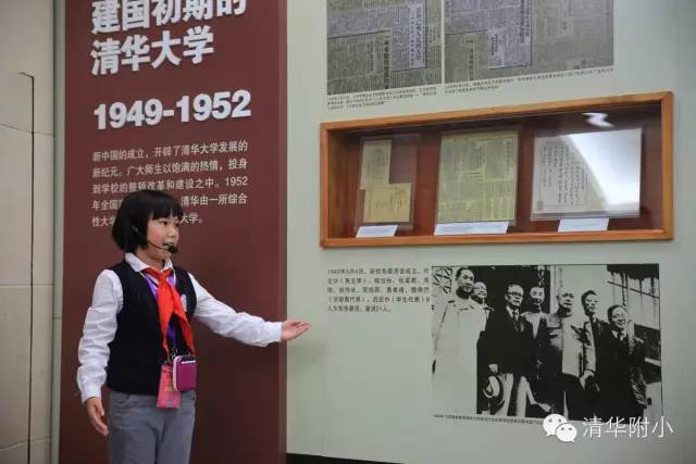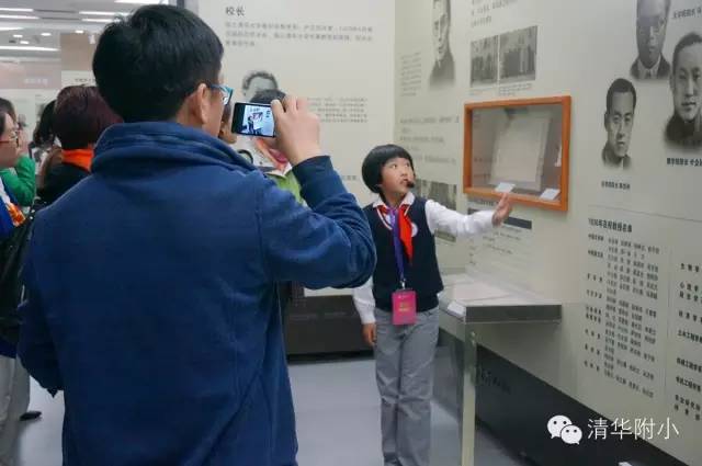 “欢迎参观清华大学校史展览,我们是丁香志愿者!”客人刚刚走进清华大学校史馆门口,一张张热情的小笑脸就绽放在他们面前,顺着清华附小三(6)班孩子们的指引,来宾们来到了校史馆内部。同学们身着整洁的清华附小校服,先有礼貌地对来宾鞠躬行礼,而后稳重有序地开始了讲解。