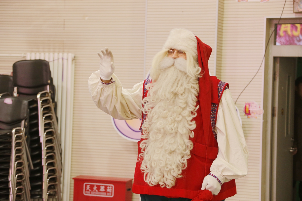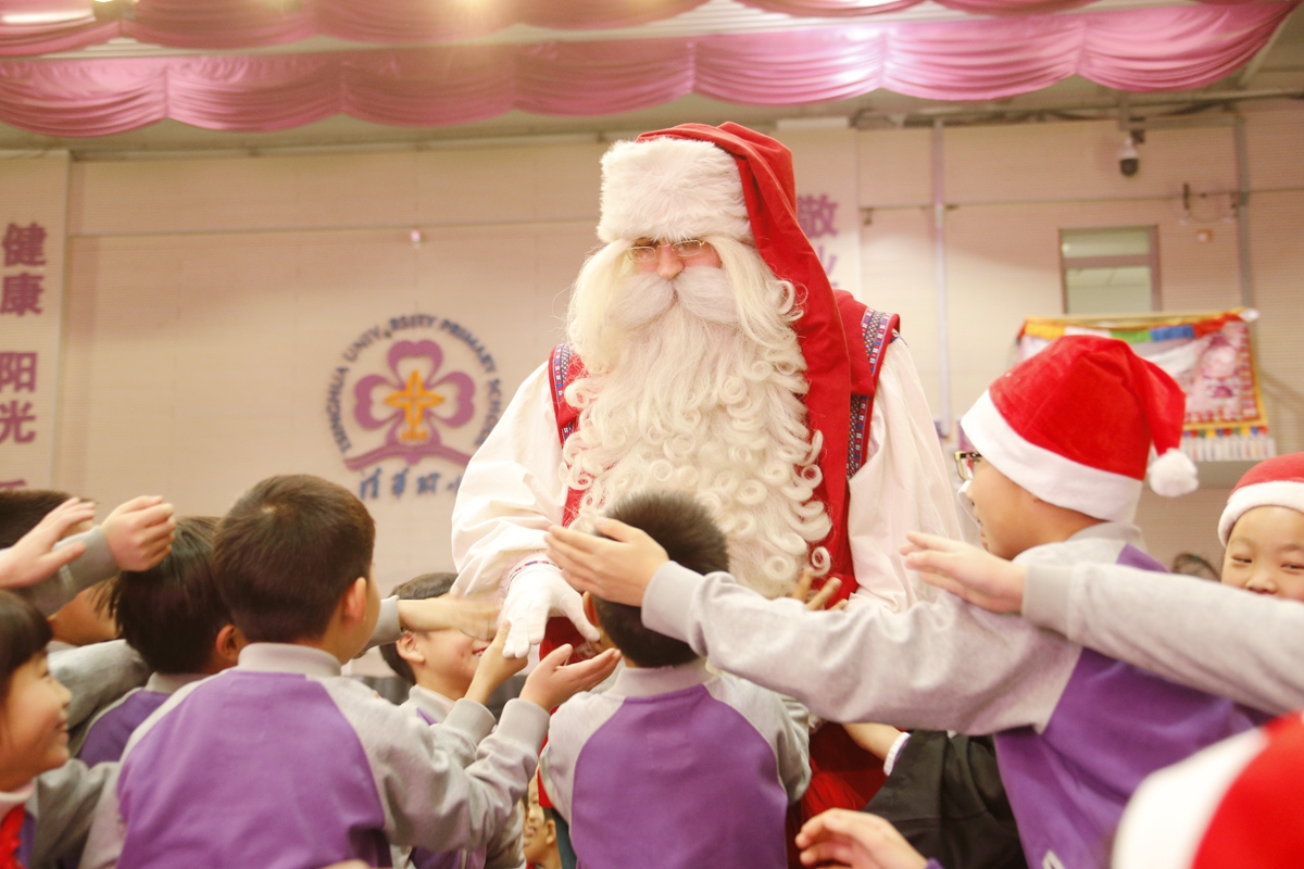 您瞧 ,Santa真的来啦!他那卷卷的长胡子,简直太迷人啦,同学们忍不住伸出小手想要摸一摸~~~