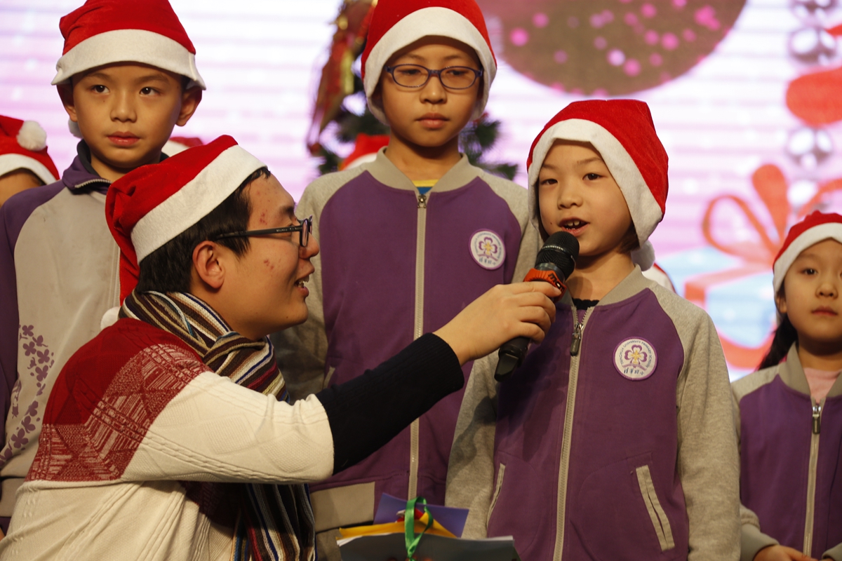 带着圣诞帽的孩子们,在台上和圣诞老人载歌载舞,共同唱响We wish you a Merry Christmas, We wish you a Merry Christmas~~~