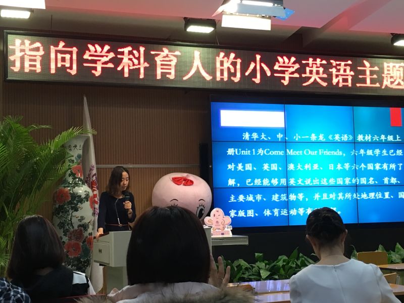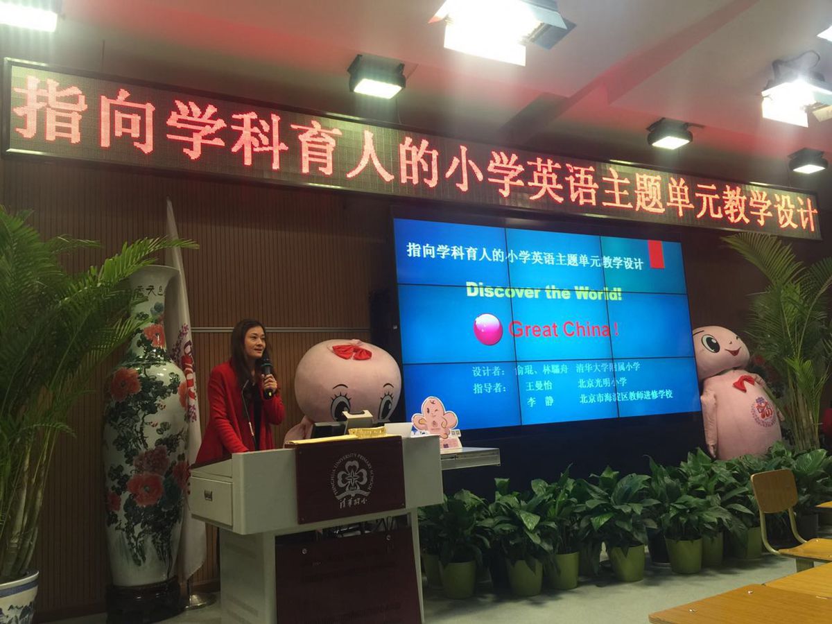2015年12月23日,由北京市中小学名师发展工程办公室、北京外国语大学名师培养基地、北京市海淀区教师进修学校共同举办的 “指向学科育人的小学英语主题单元教学设计展示及研讨会”在清华大学附属小学召开。莅会领导、专家有北京外国语大学中国外语教育研究中心研究员,硕士生导师杨鲁新副教授、北京市特级教师王曼怡老师、海淀教师进修学校副校长支瑶老师、以及海淀区教师进修学校小学英语教研员李静和程燕老师。