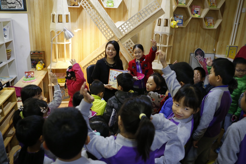 “小朋友们坐好啦!听故事啦!“每天早上七点半,都会听到图书馆杨老师这样亲切地召唤。同学们团团围坐在故事爸爸、故事妈妈的身边。