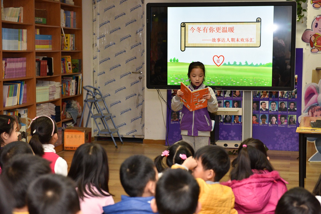 在这所学校,这座书馆里,孩子们不仅爱上母语,爱上阅读,也爱上分享。分享阅读的智慧,阅读的乐趣,阅读的感动。孩子们在这里收获知识,收获友谊,收获成长。一共三十余位故事达人,在七十五个温馨的早晨和千余名热爱阅读的小听众一起,让丁香书苑的一角,成为启迪智慧、分享欢乐、传播爱与高尚的圣殿。有越来越多的故事小达人成长起来了,他们站到了“故事吧”的讲台,站到了学校的正中央。