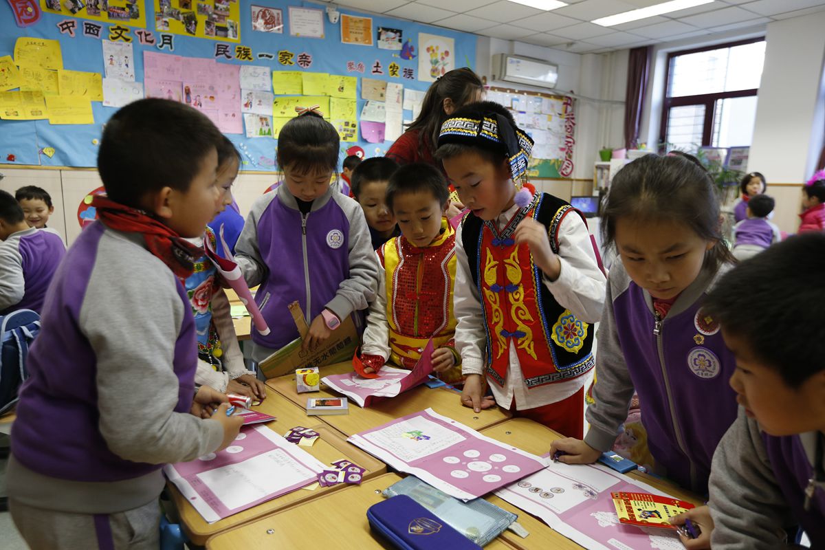 在中国有56个民族,但每个民族有什么特色,可能是一二年级学生所不太熟悉的。如何让少数民族的特色变得可以触摸?如何让孩子们对看着还不那样熟悉的民族萌生兴趣?同学们在老师和家长的协助下,开展了资料搜集工作。