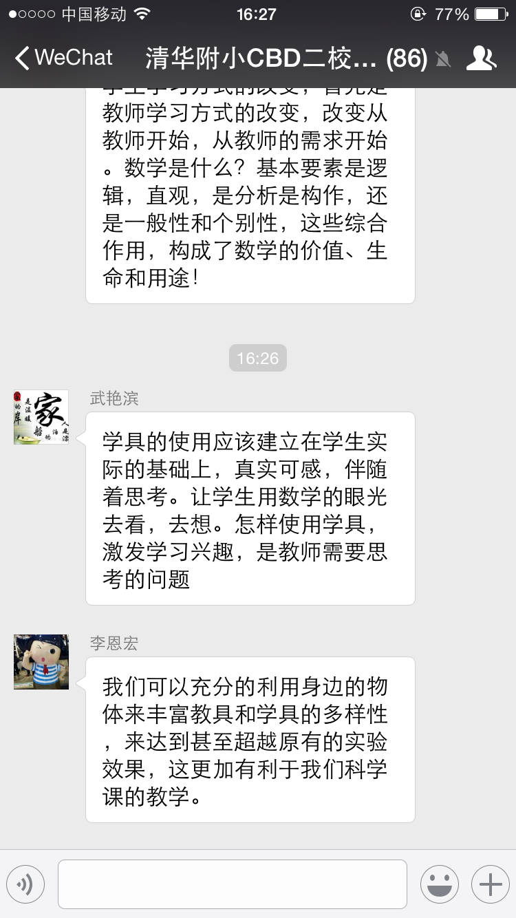 王老师赞赏了清华附小教师团队的研究精神和、创造力和参与感,建议大家对学具的选择可以“延伸”可以“生根”,让我们的教育不是倒满一碗水,而是点燃一团火!