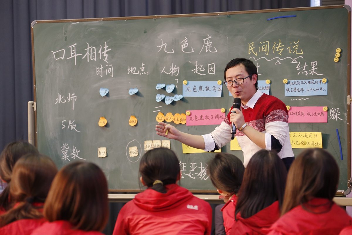朱老师的识字课将前测的结果运用到教学当中,同时带领学生将识字过程中的经验进行迁移,提升迁移能力。熊老师通过《捞铁牛》这一课,让大家明白,运用一篇文章表达不同内容,表述方式也会有不同特点。不同于表现人物、表现历史等的文章,科学文章具有非常强的逻辑性。启发大家,日后在描述或者写作文学作品的时候,应该把握其主要特点。薛老师的《九色鹿》,用表格将不同版本的文章特征梳理出来,这在向学生传达一种良好的学习方法。通过对三篇字数不同的同一篇课文学习,可以延伸到文章的扩写和缩写。