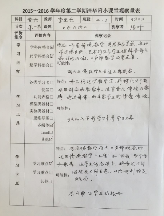 听课老师们的听课也利用评课工具表,更有针对性的指出上课老师的一些问题与建议,评课工具的使用也使听评课更有针对性。