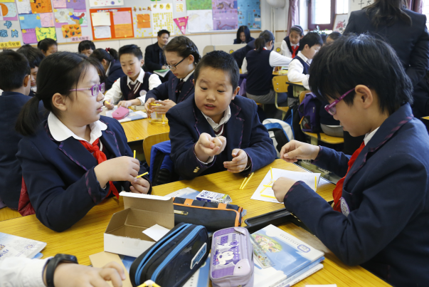 同学是最重要的学伴。小组学习时,他们在窃窃私语,他们在倾听应答,他们在忙忙碌碌……清华附小的课堂上特殊的课堂文化,吸引了听课的老师们。