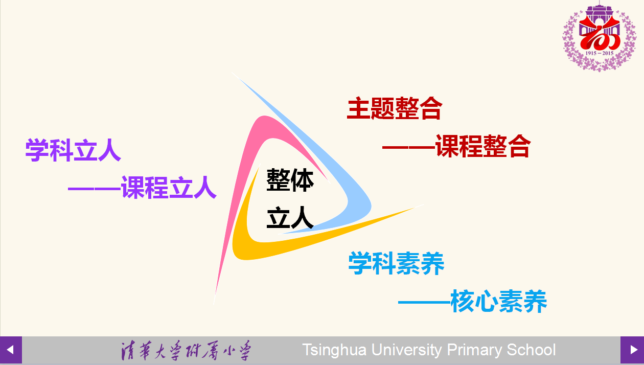基于清华大学“自强不息、厚德载物”的校训精神和清华附小“造就完全人格之教育”的历史渊源,契合主题教学“语文立人”的核心思想。从成志学校走向成志教育,一直坚持对人的关注,旗帜鲜明地提出“成志教育,照耀一生”的哲学主张。语文立人,指向立德、立功、立言,努力成为聪慧与高尚的人,进而成志。