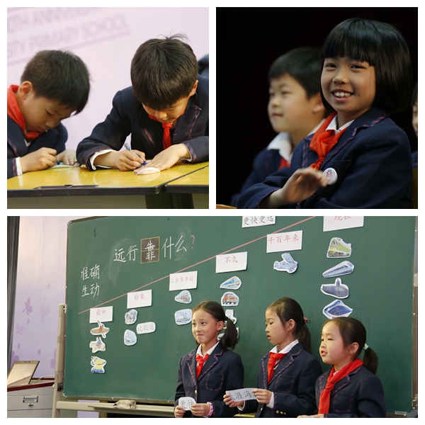 熊忠雄老师带来了群文阅读《掌声分给她一半》,一篇带多篇,通过叙事、抒情、描写的方法,体会人物“自强不息”的精神。焦玫老师带来整本书阅读课《城南旧事》,带领6年级的同学们一起思念童年和珍惜童年。钟姝老师带来了主题实践活动课《一起玩手偶》,通过消弭式整合途径,寻找语文教学与学生生活的链接。