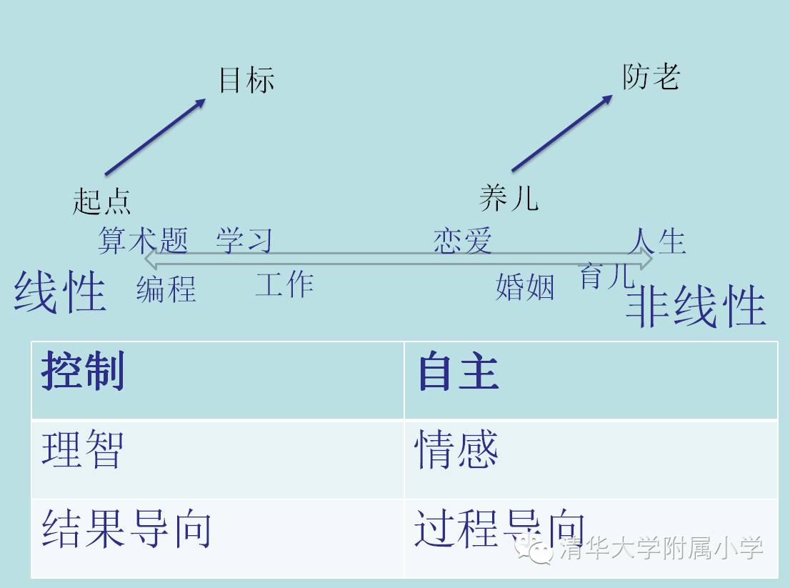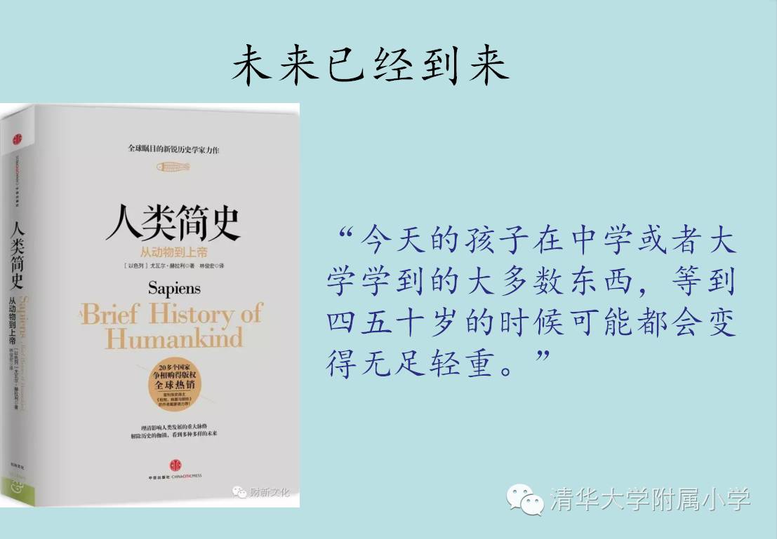 为什么要育儿?清华的家长大多不需要以儿防老,所以目的导向不存在。一项研究表明,现在的小学生65%将来从事的工作,现在还没出现。重视培养他们的各种能力最重要。