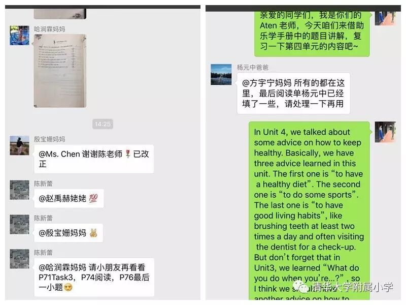 按照“停课不停学”的原则,每天上午9点-12点为模块学习时间。附小的老师们按照语文、数学、英语等课程安排,进行建群辅导,老师们一个接一个安排好值班时间,通过视频、音频、课件的模式,与学生进行时时互动交流。