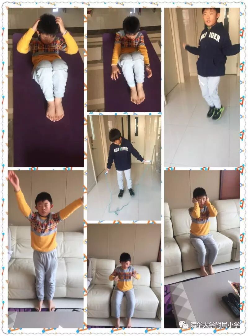 利用清华附小在线学习的强大平台,把附小的室内运动操变为学生可以在家运动的教材。每天锻炼一小时,健康工作五十年。