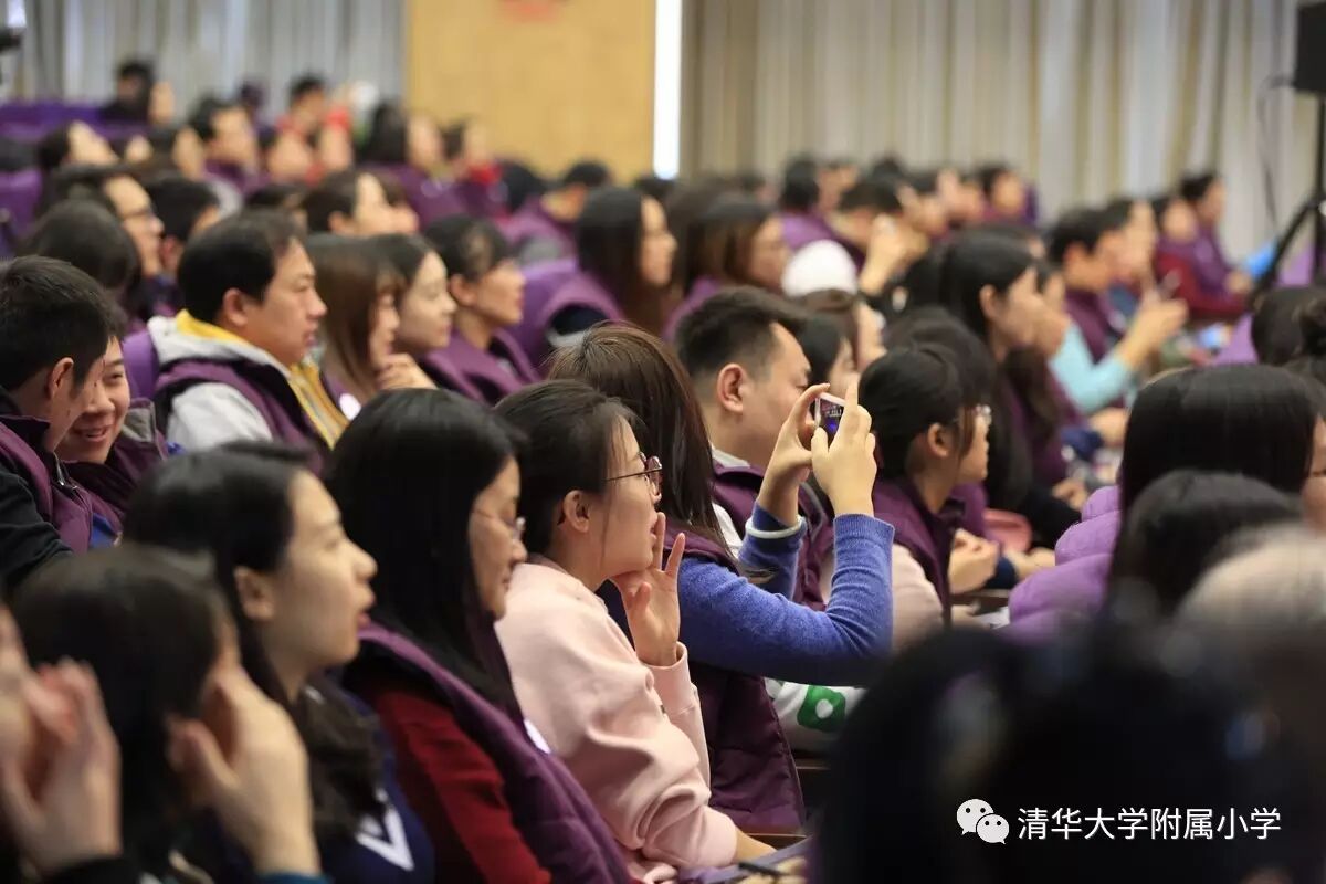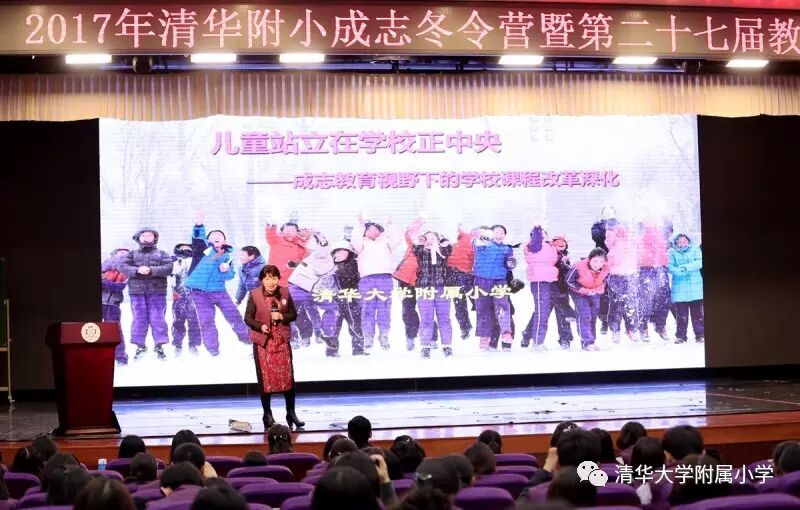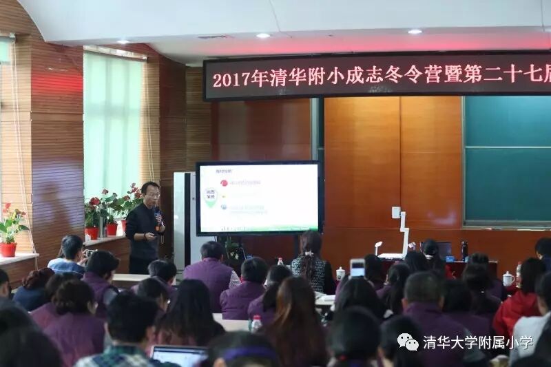 窦校长做《儿童站立在学校正中央——成志教育视野下的学校课程改革深化》主题报告,为2017年清华附小核心素养落地、课堂改造做了方向引领。