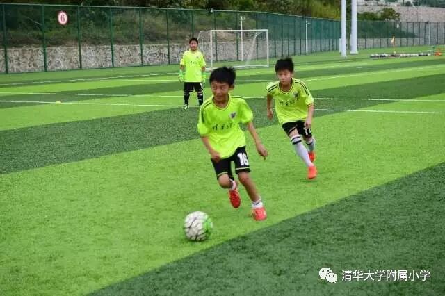 “身体是教育、足球是教材”。清华附小一直把校园足球当作载体,推进学校整体教育教学的发展。清华附小一方面发挥足球的育人功能,形成了“男女齐上阵,人人会踢球、班班有球队”的氛围,已经连续举办5届校园足球联赛。同时,立足社团,强技能,形成了“爱踢足球得健康,踢好足球圆梦想”的氛围,先后向恒大、鲁能以及足球特色学校输送多名优秀梯队人员。
