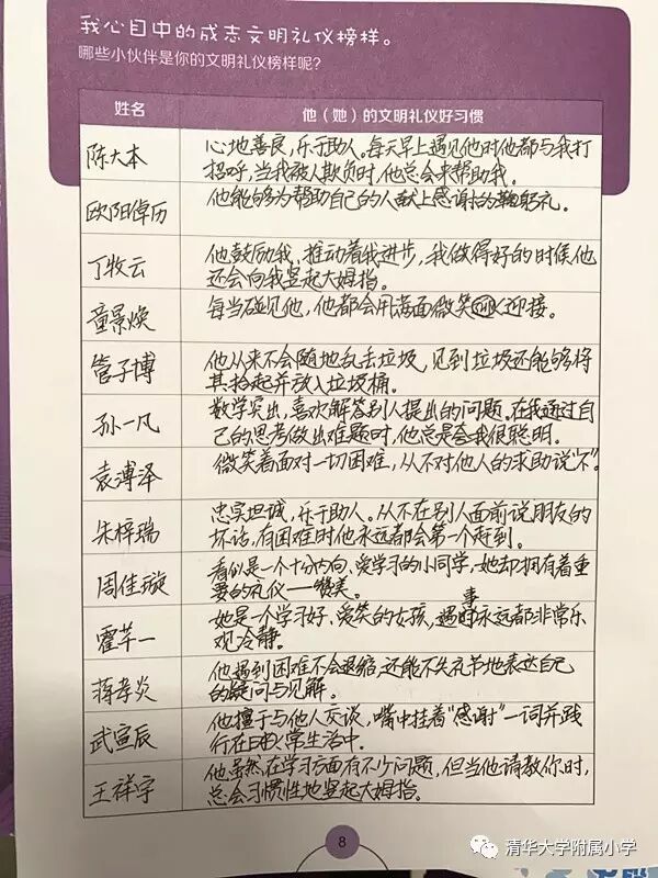 每个同学都有3张“微笑、感谢、赞美”名片贴,